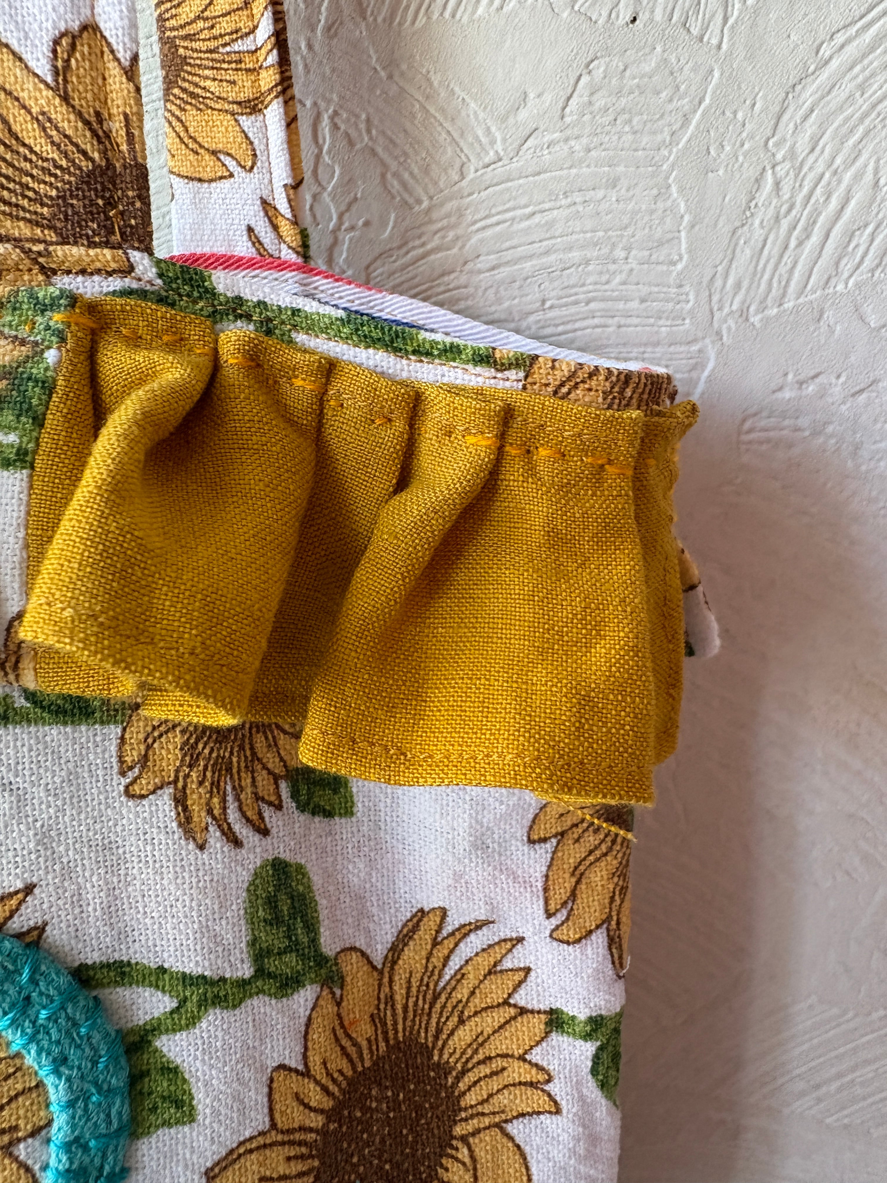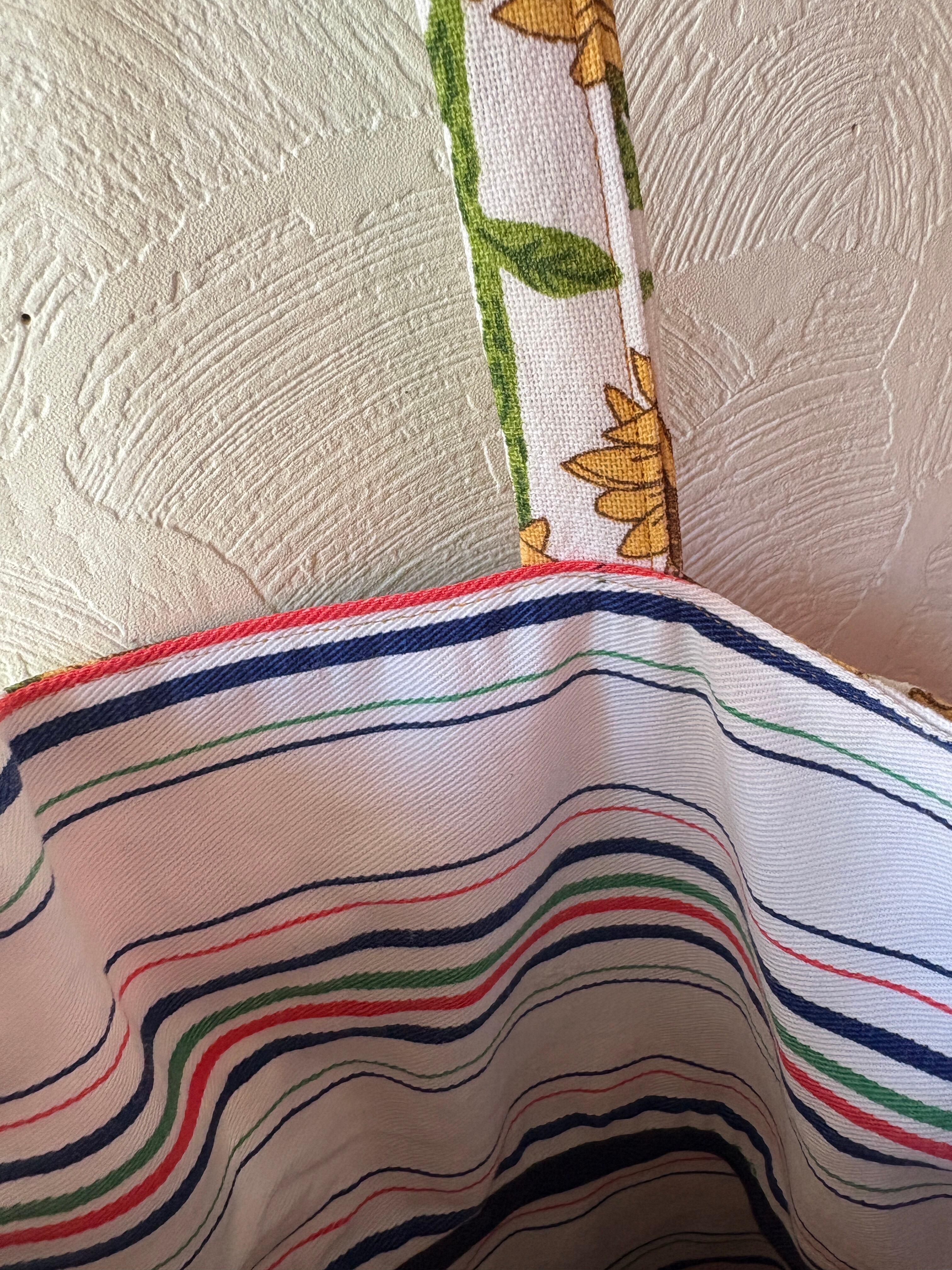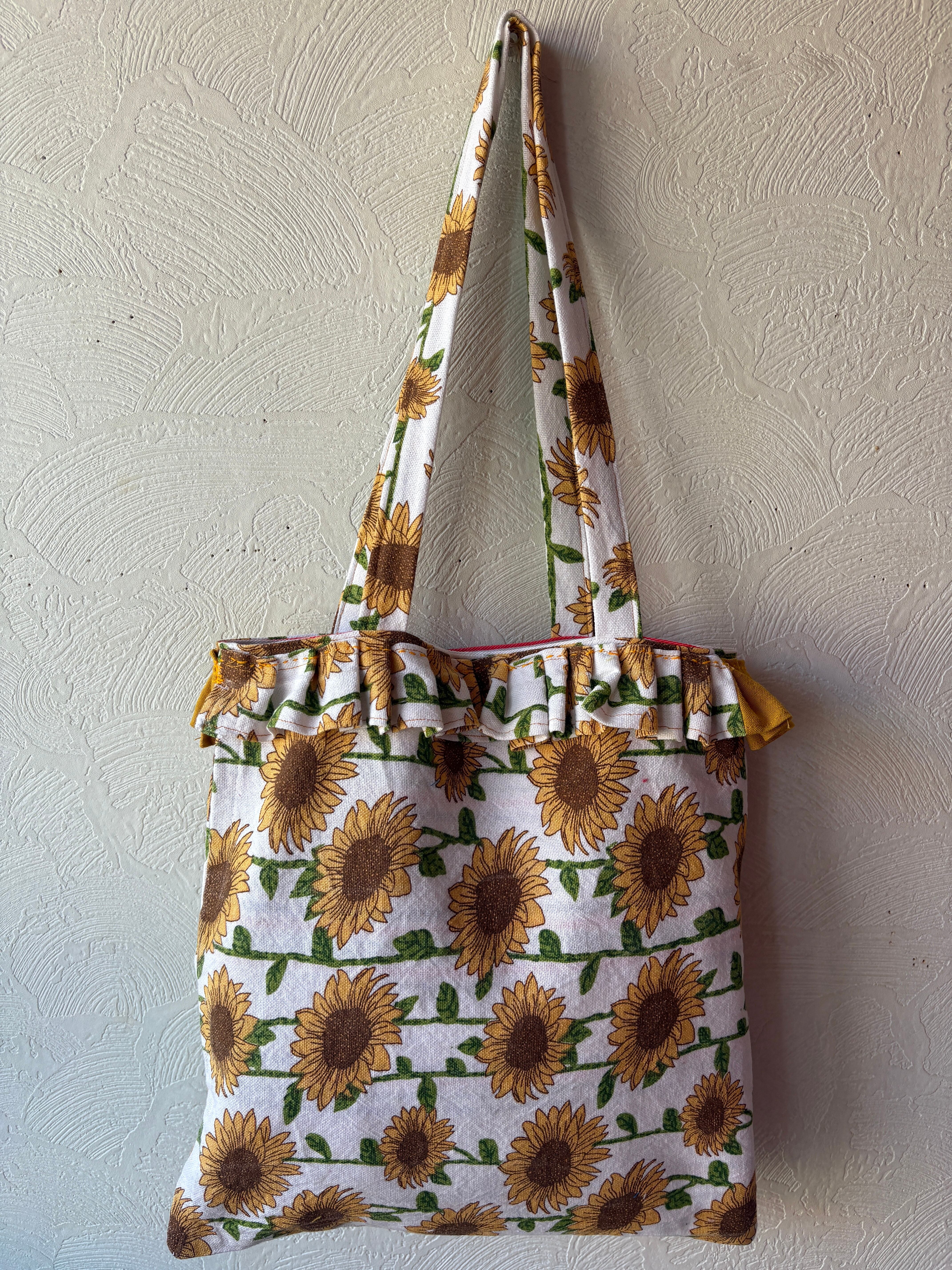 向日葵模様のクロスを使用したトートバッグ。