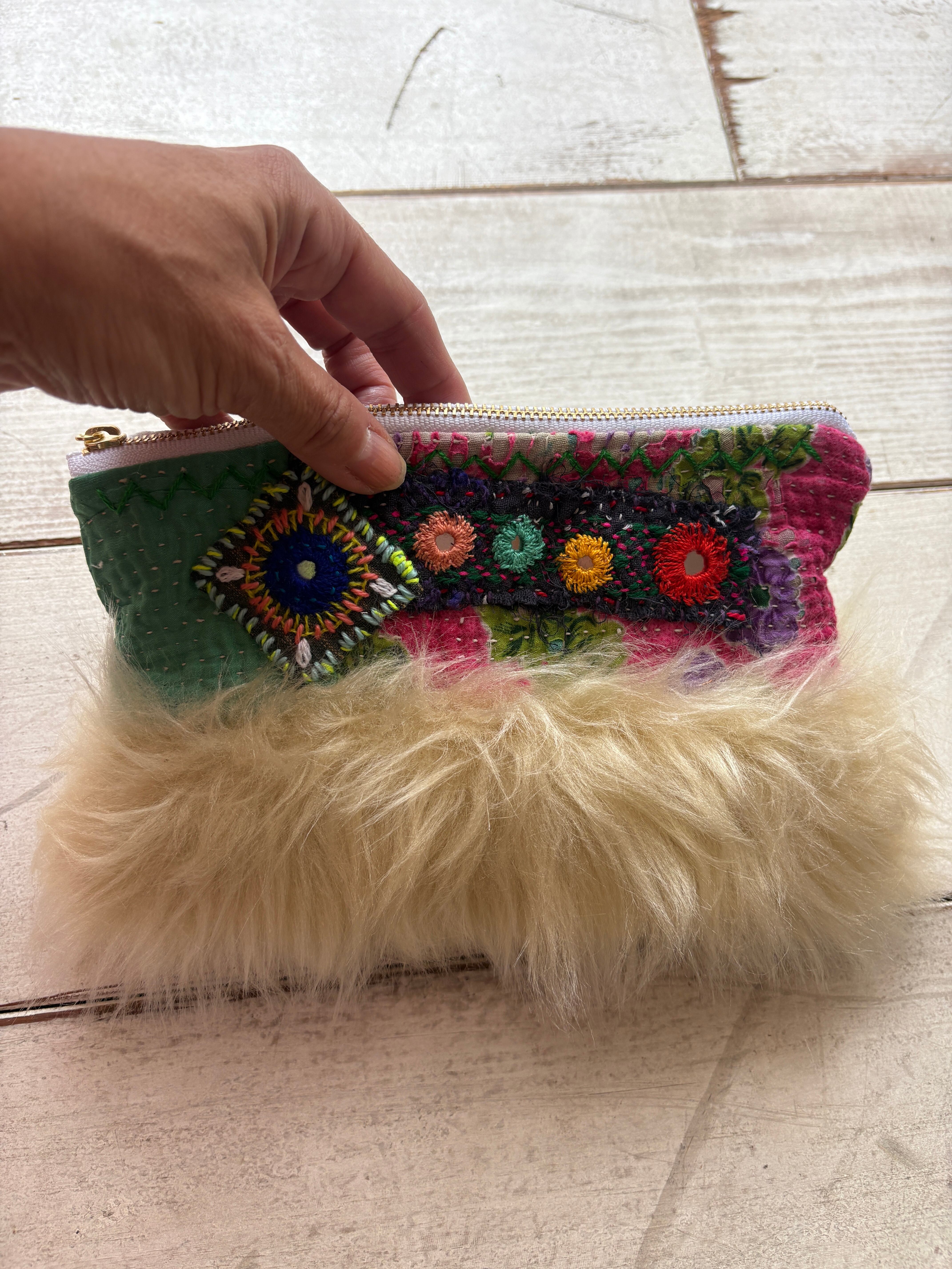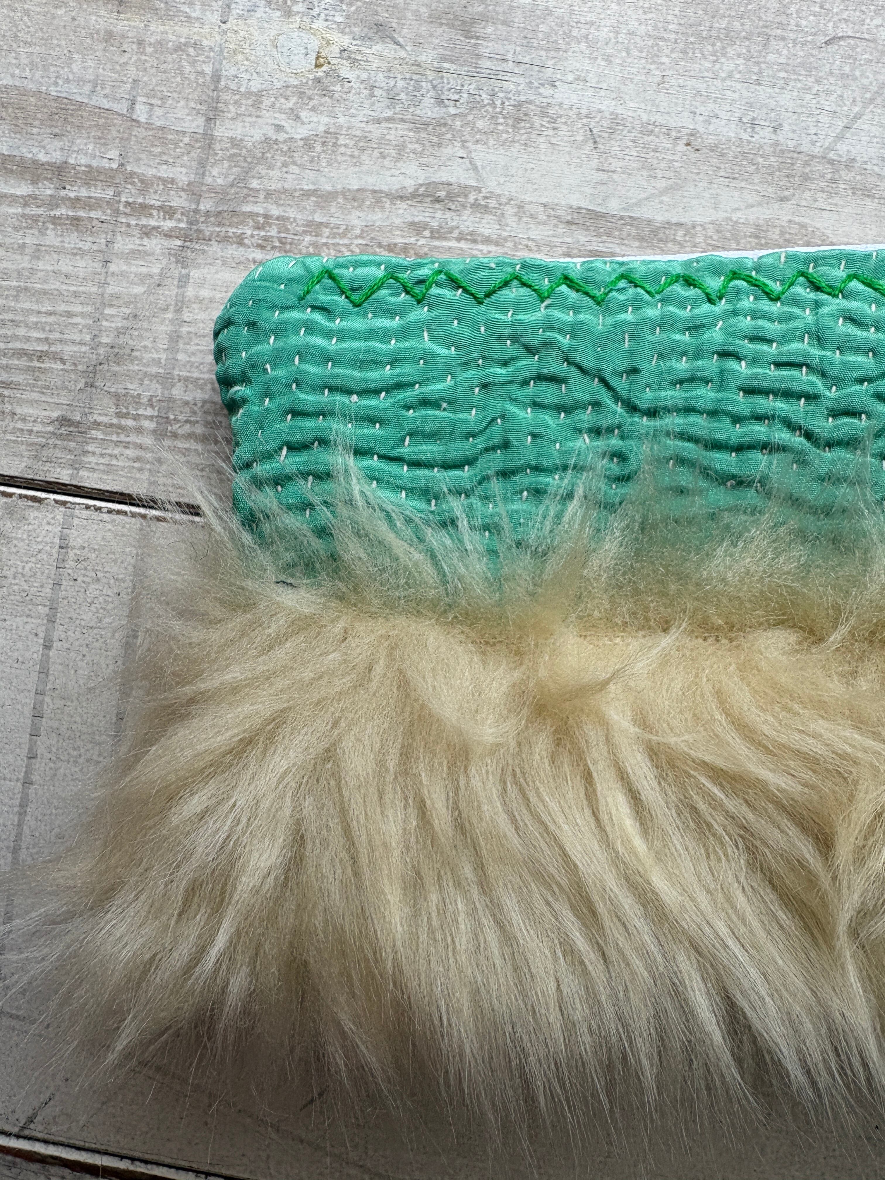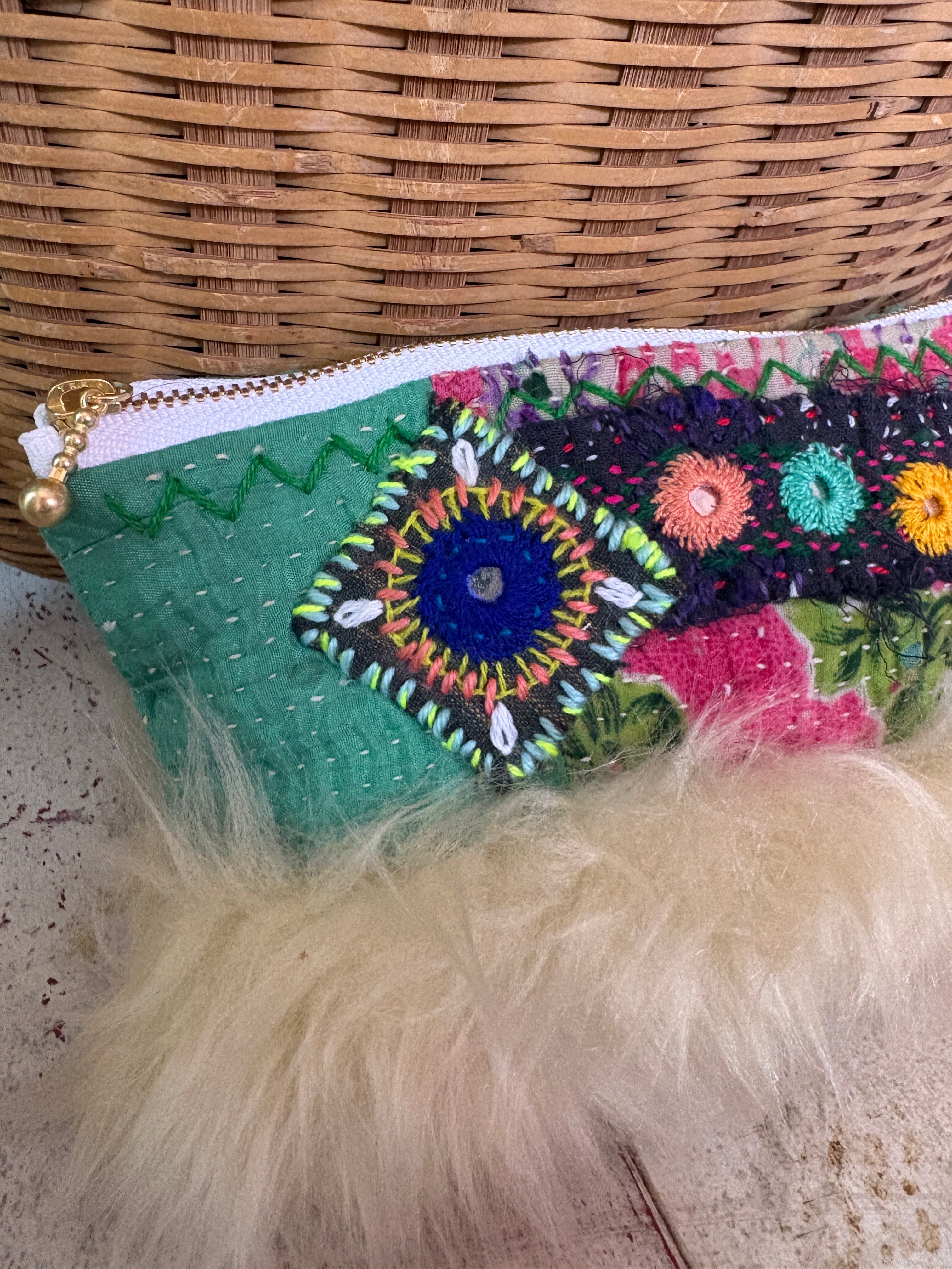 ミラーワーク刺繍とハギレを使い装飾しました。
