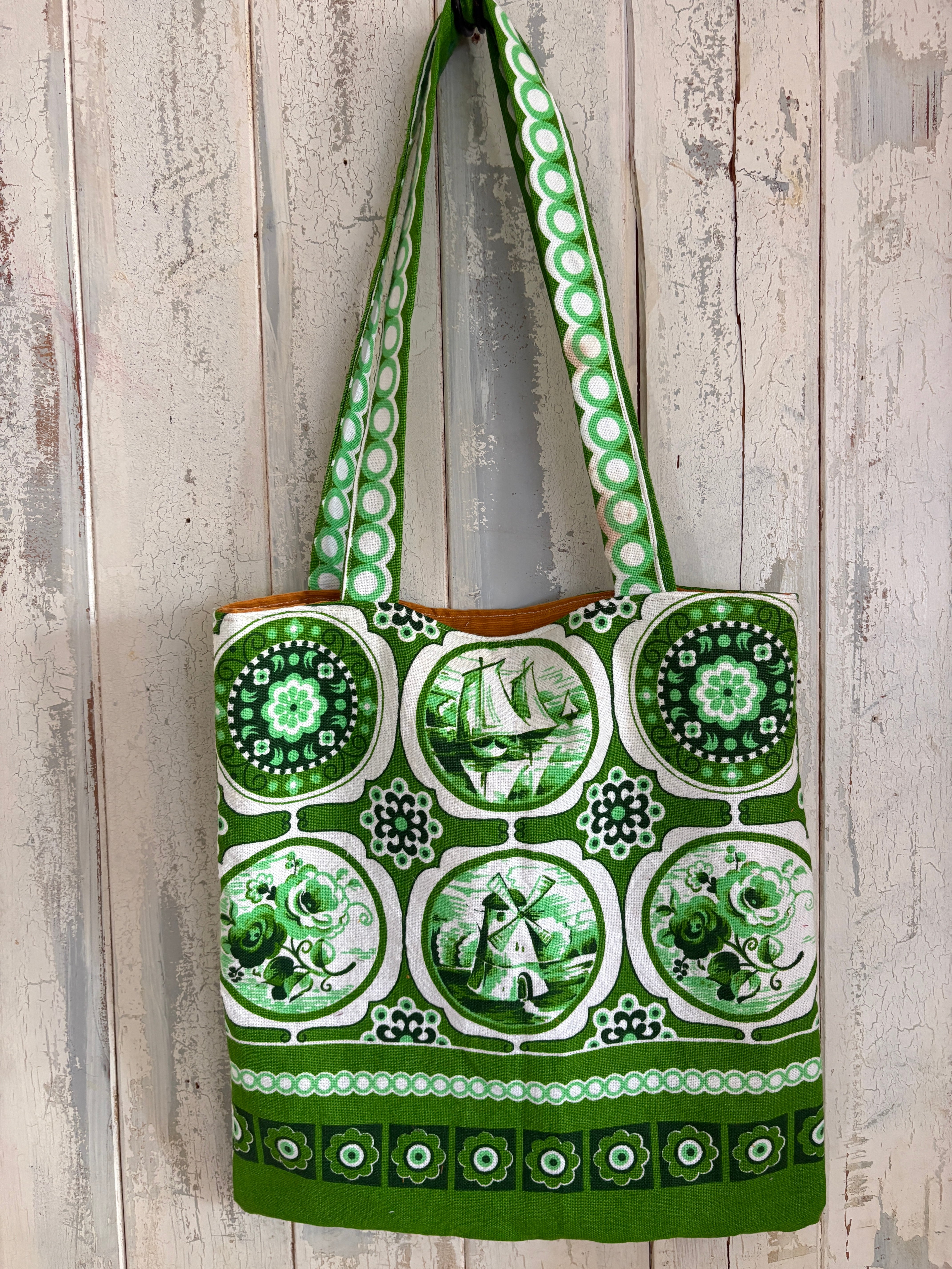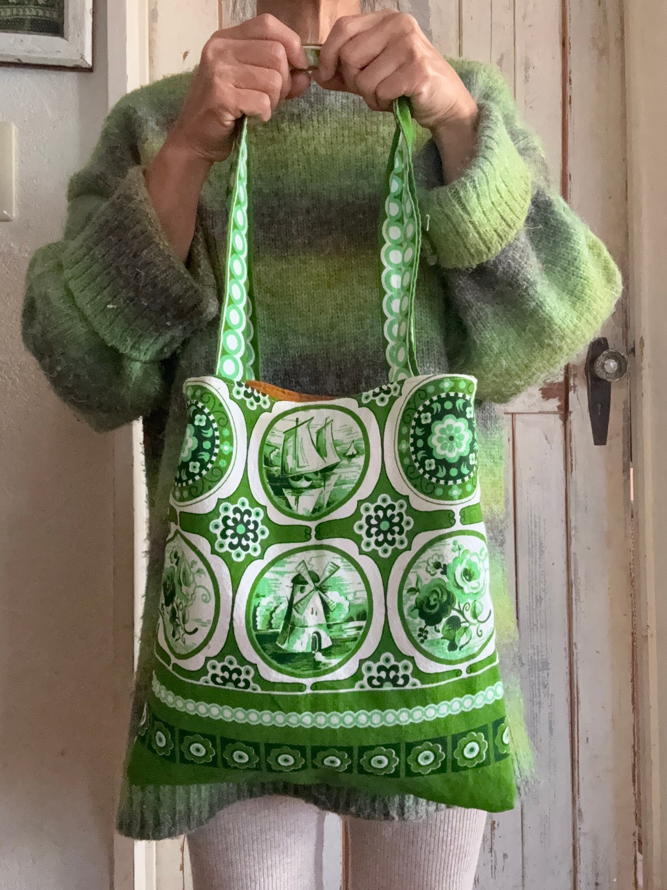 緑が鮮やかなキッチンクロスをリメイクしたbag。