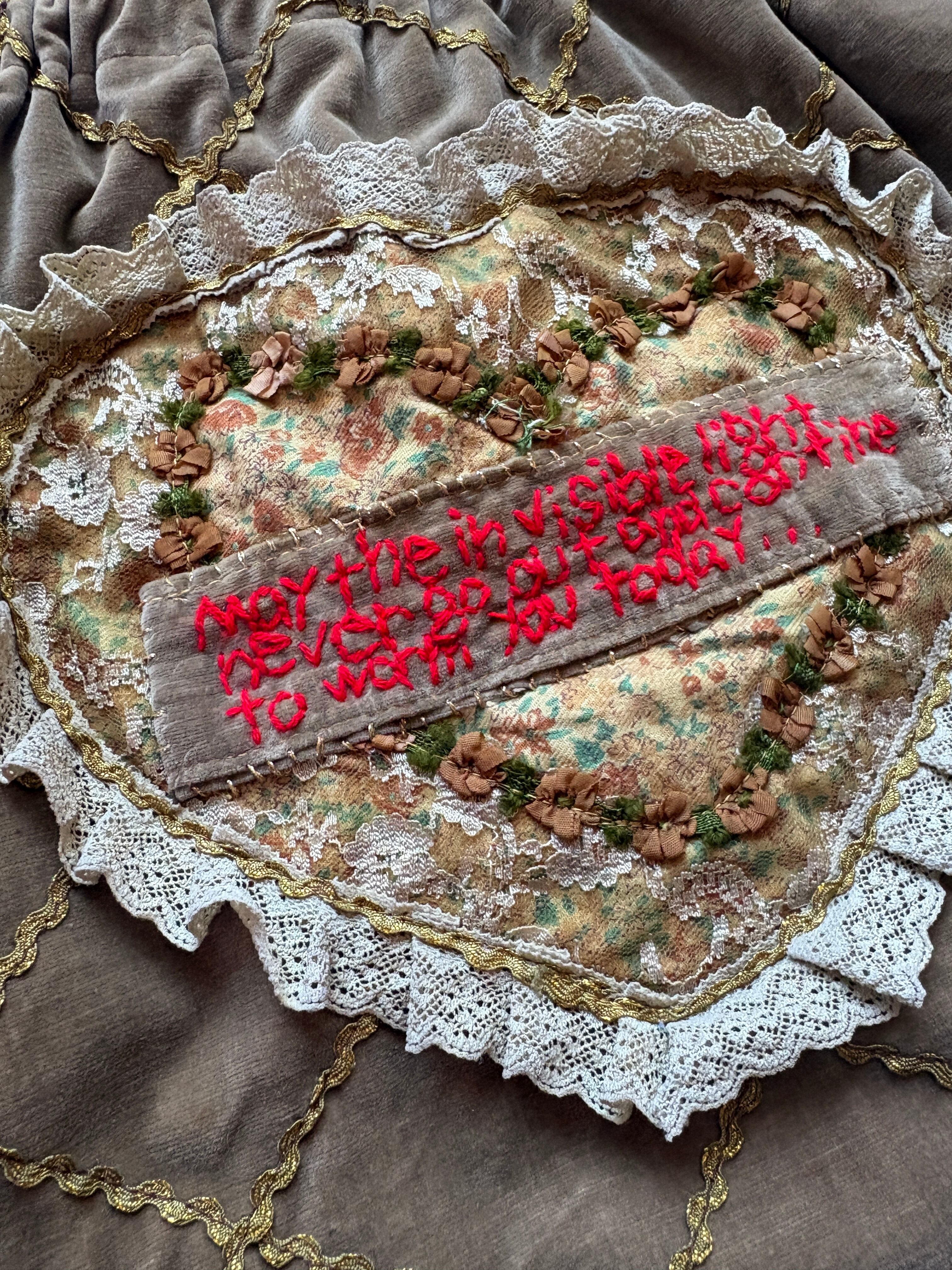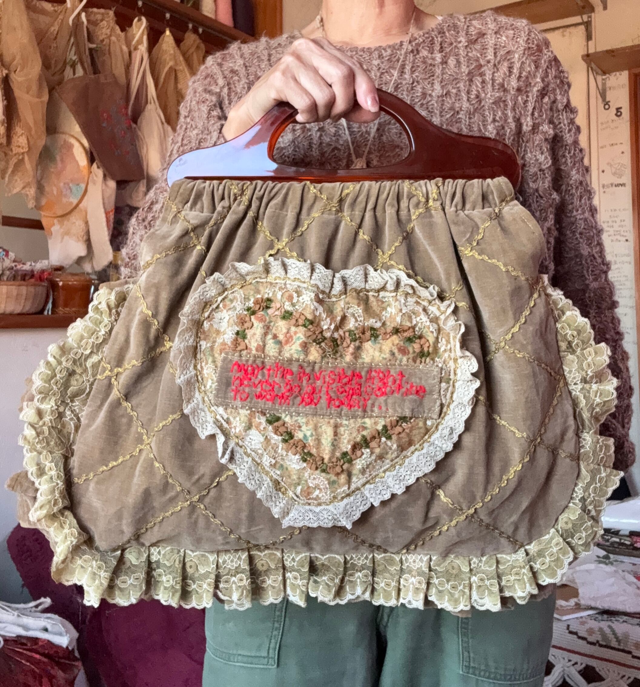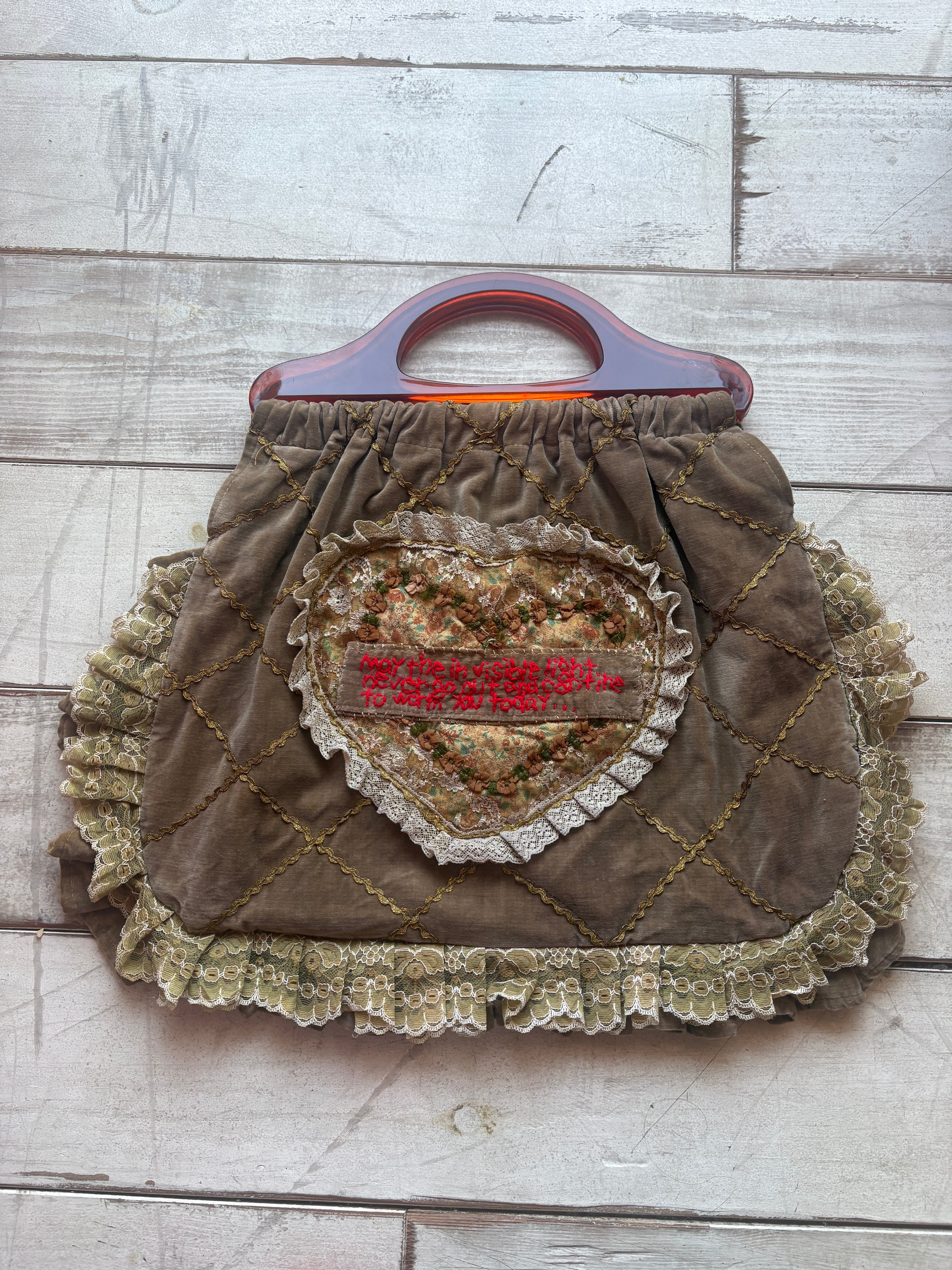 品のあるベルベット生地ときらびやかなレースを使用したvelours lace remake bag。