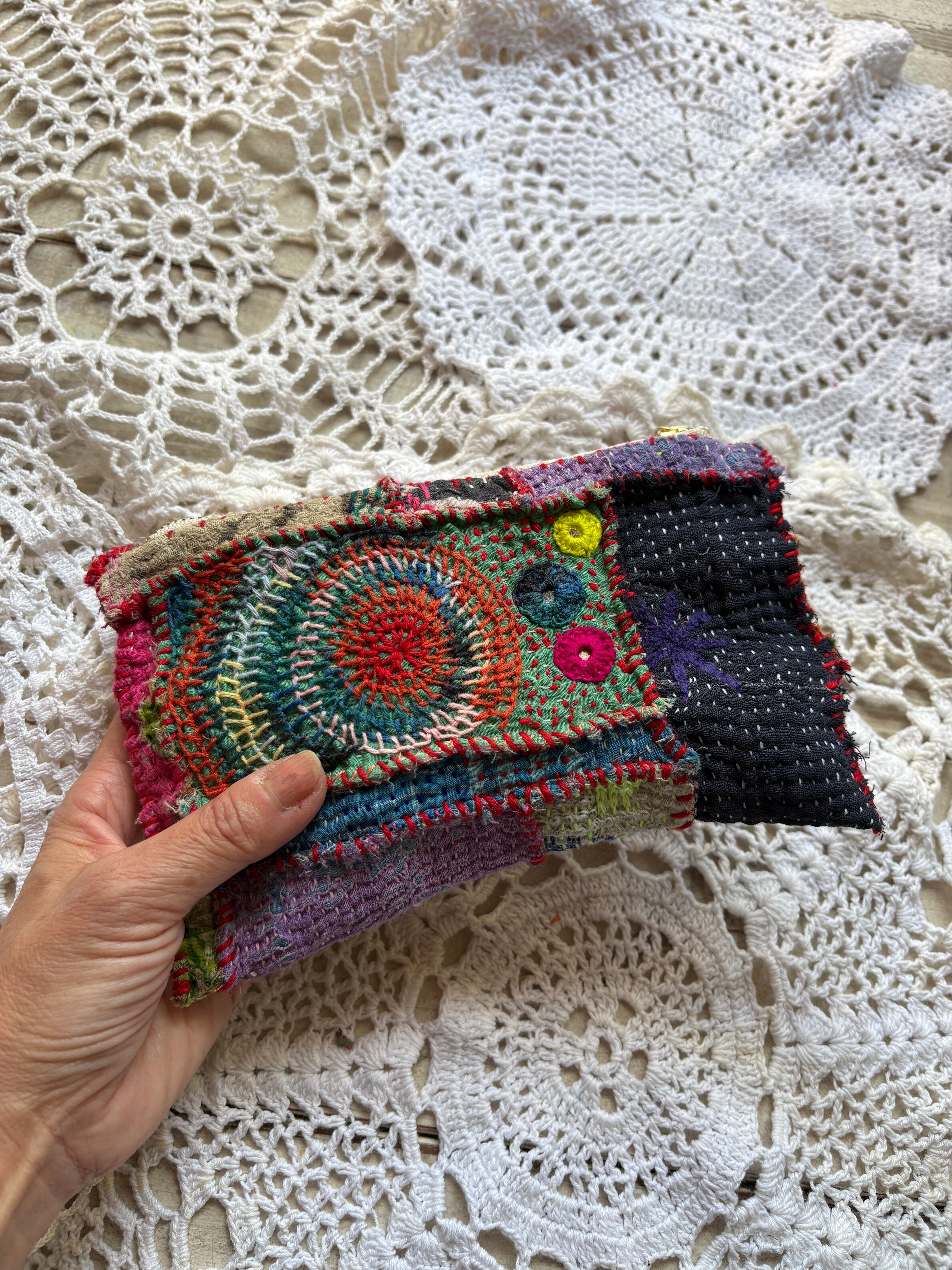 全て手縫いで仕立て、円を取り巻く模様も個性的です。