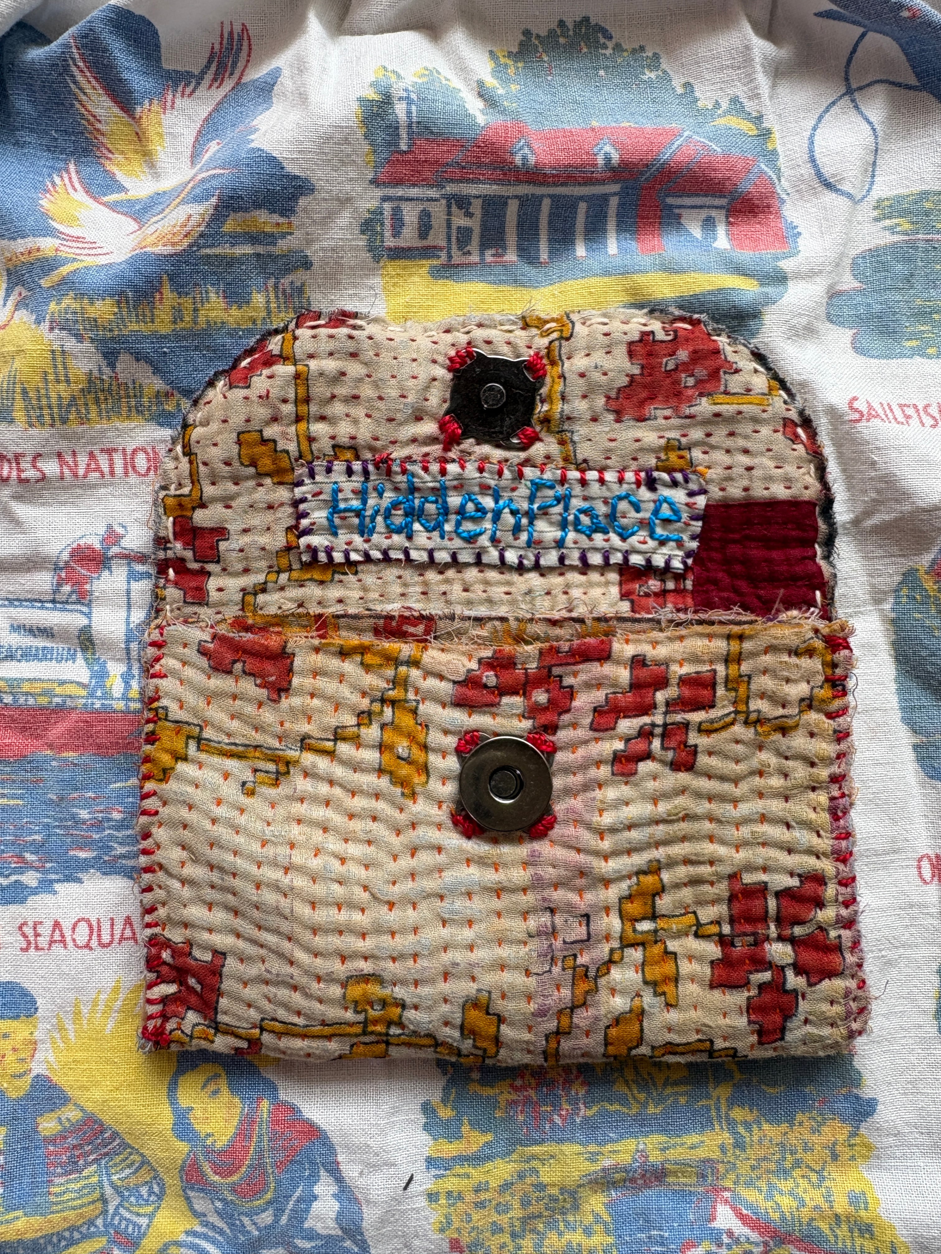 ヴィンテージカンタのハギレを使った小さなお財布になります。