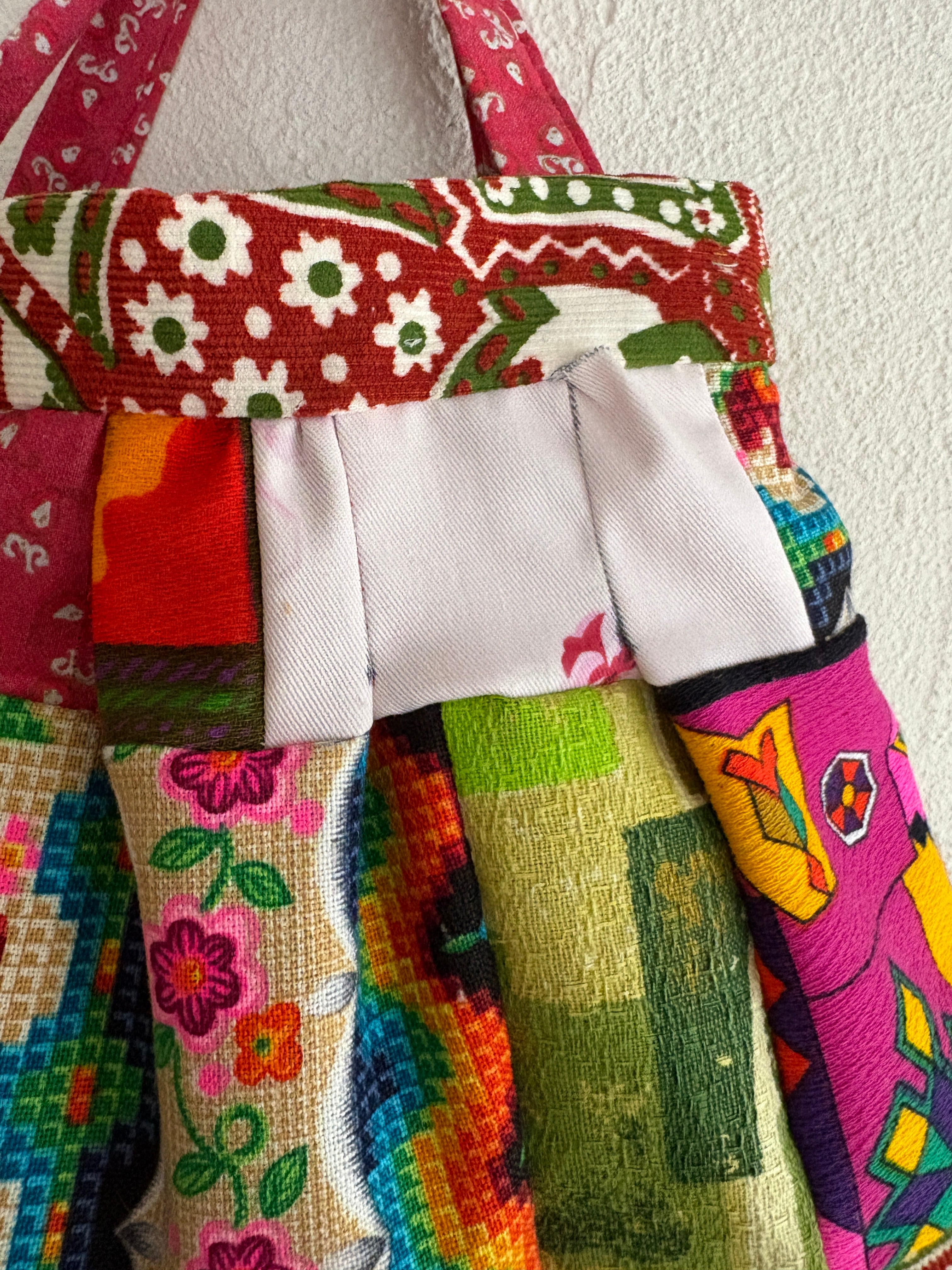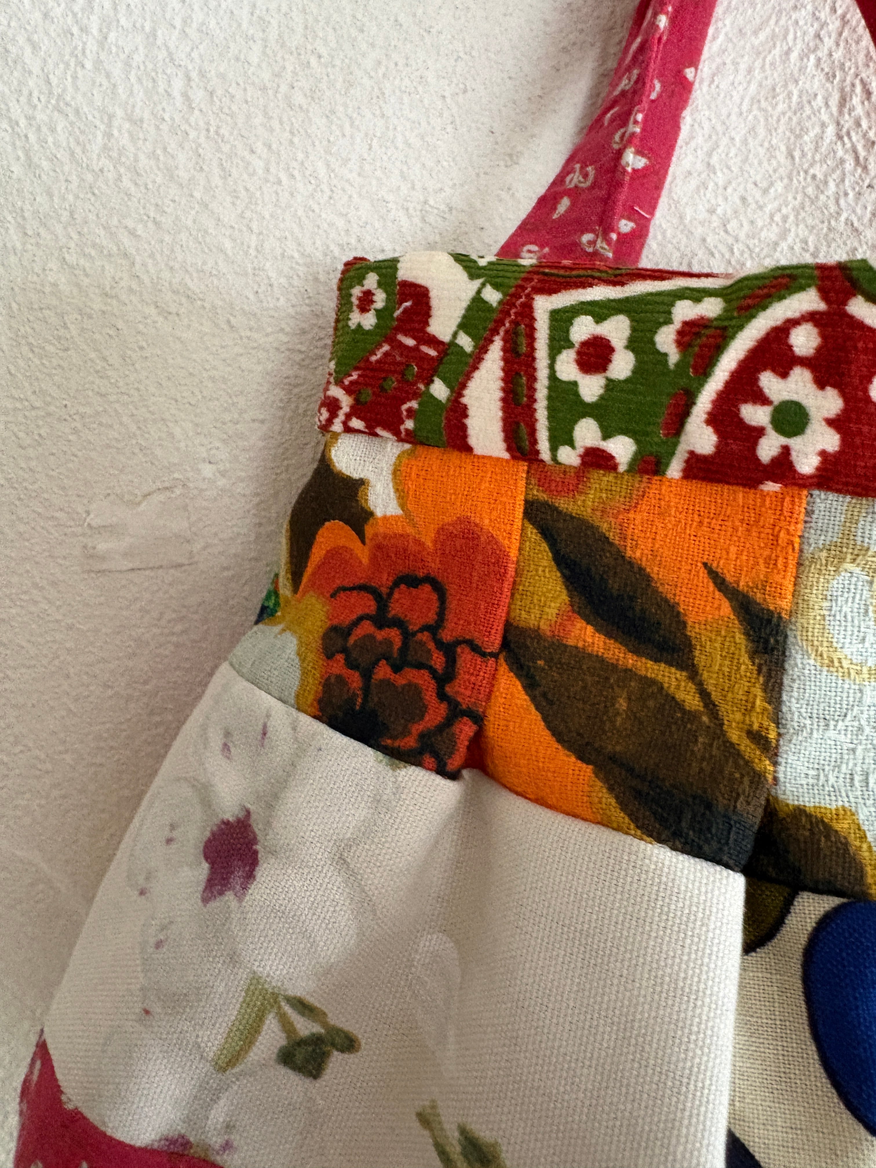 vintage fabric patch bag