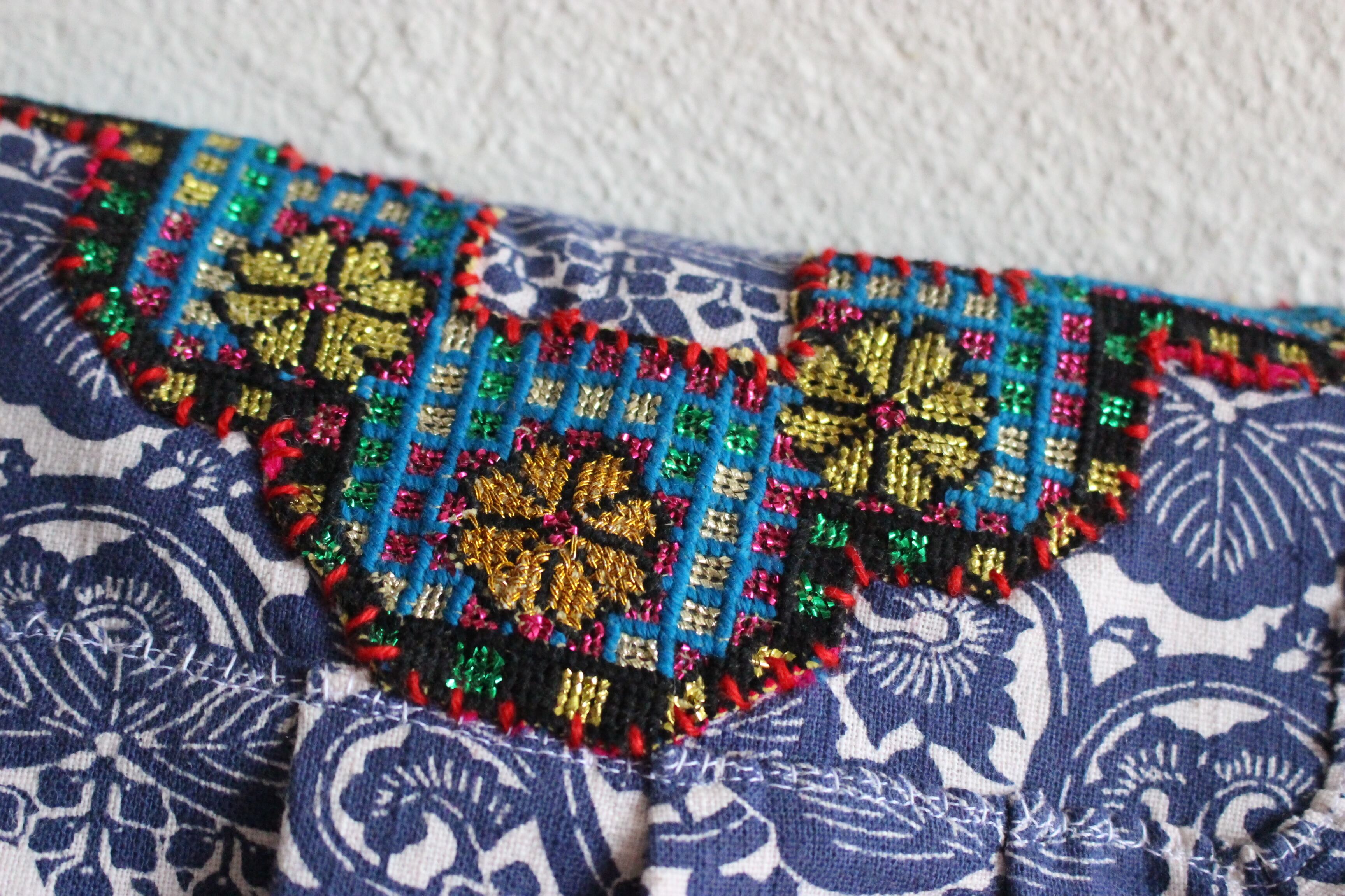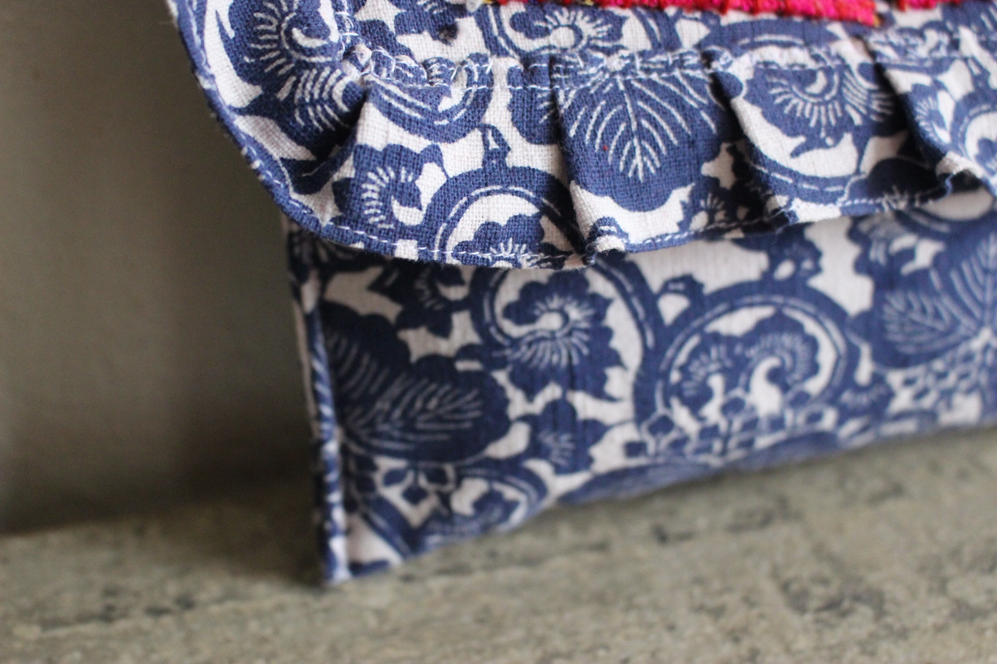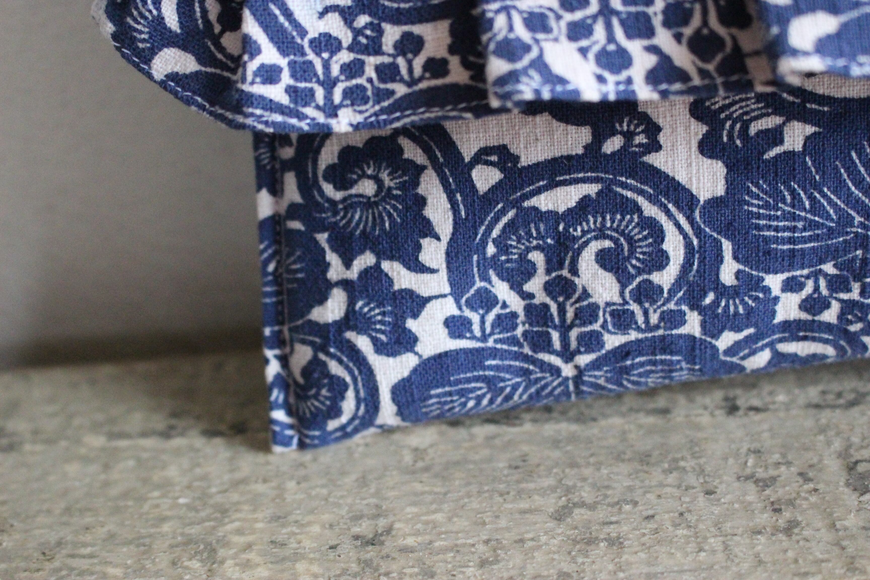 日本製のオーガニックコットンの松模様の生地でフリル付きポーチを作りました。