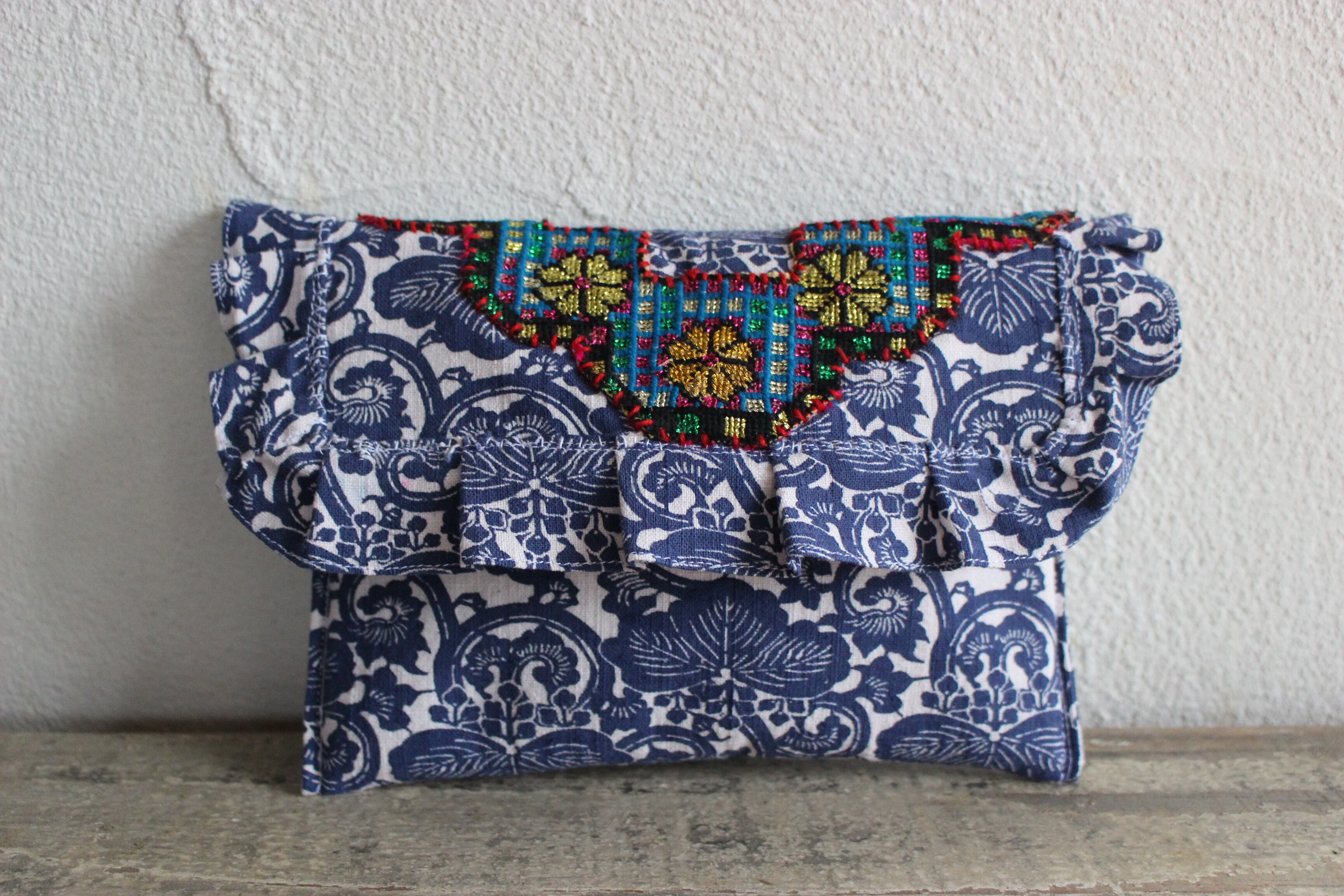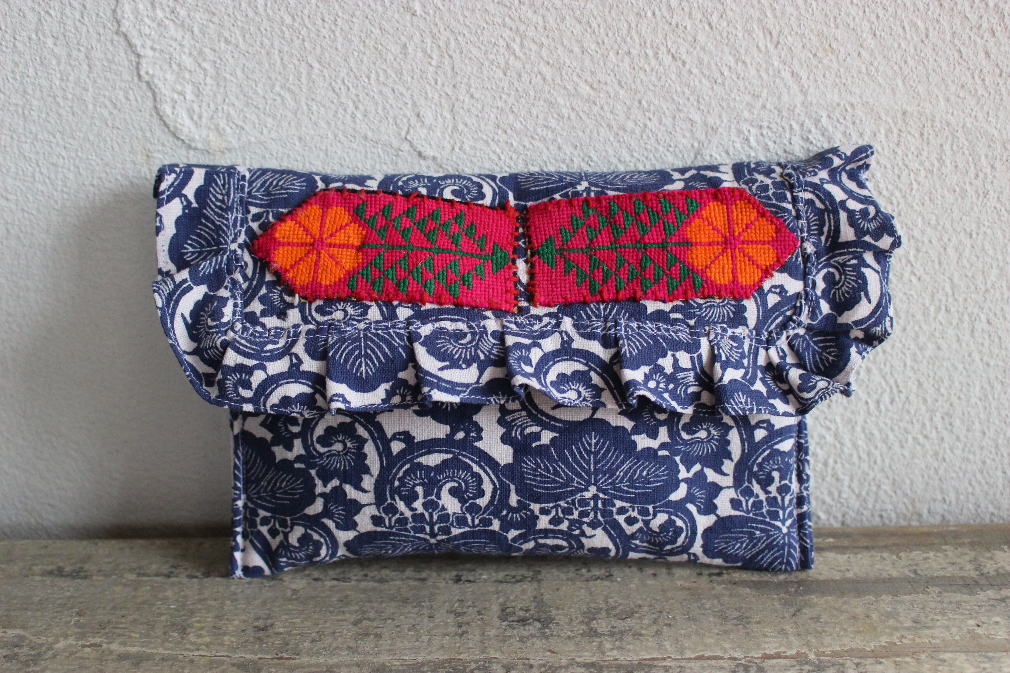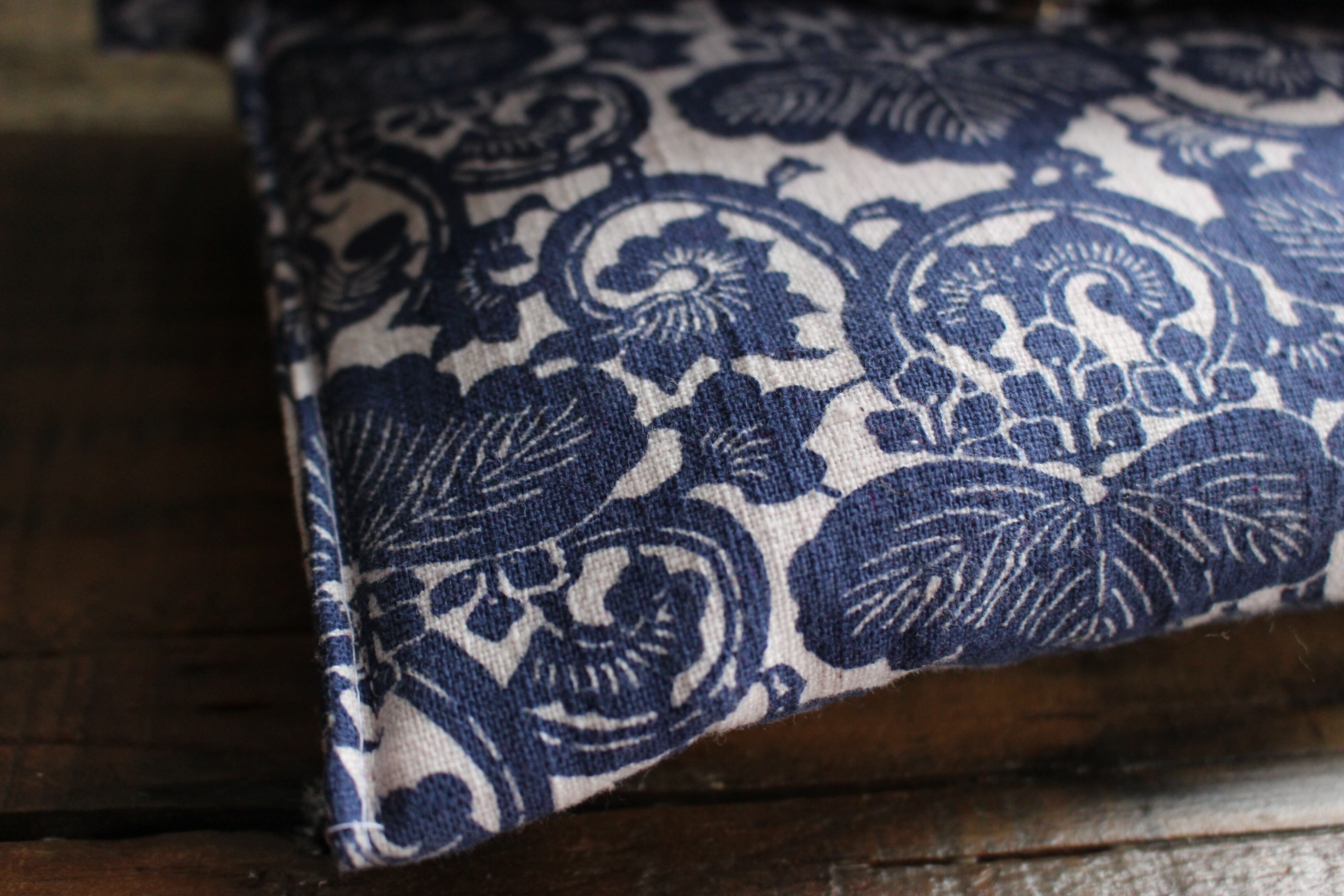 日本製のオーガニックコットンの松模様の生地でフリル付きポーチを作りました。