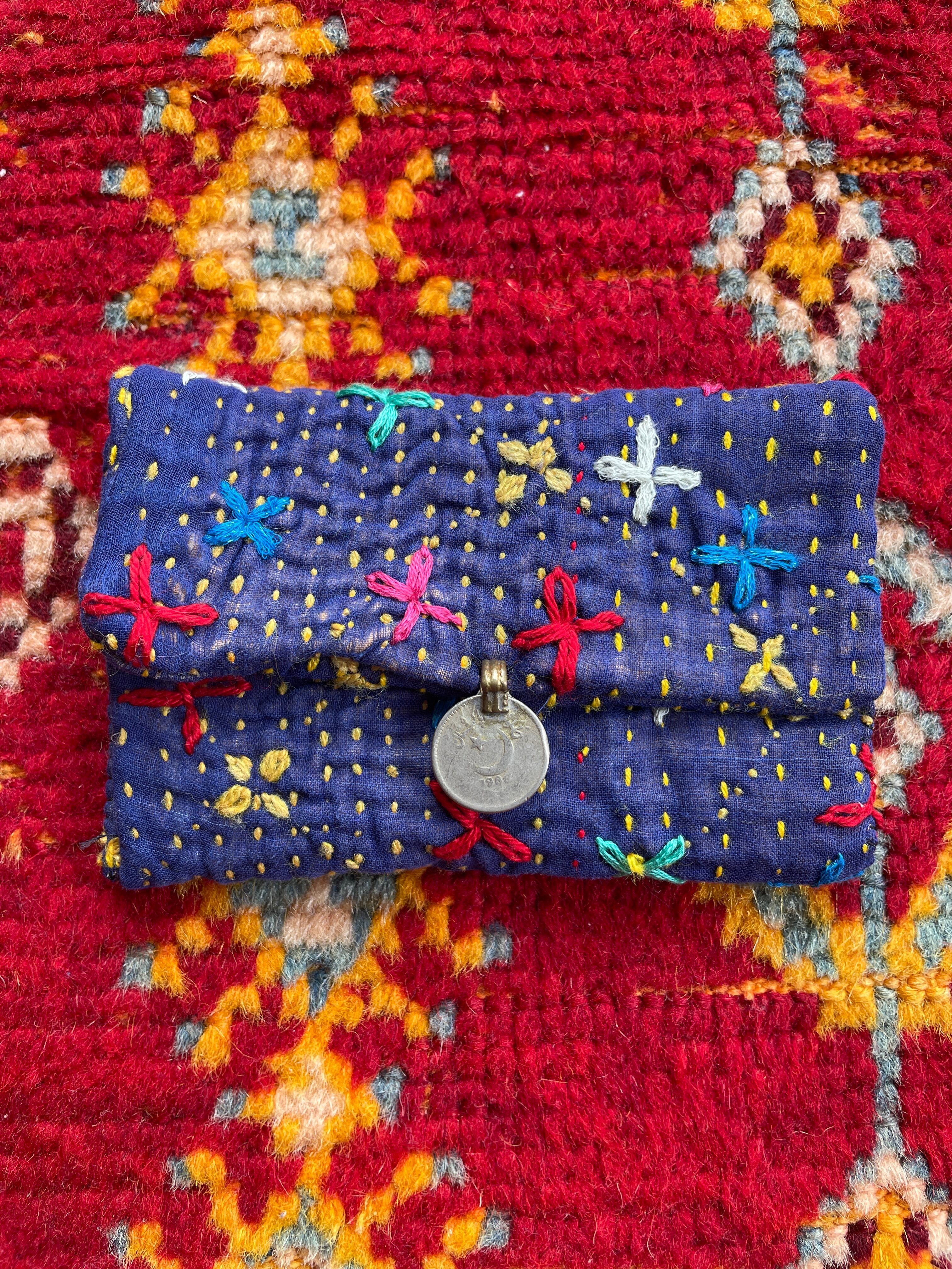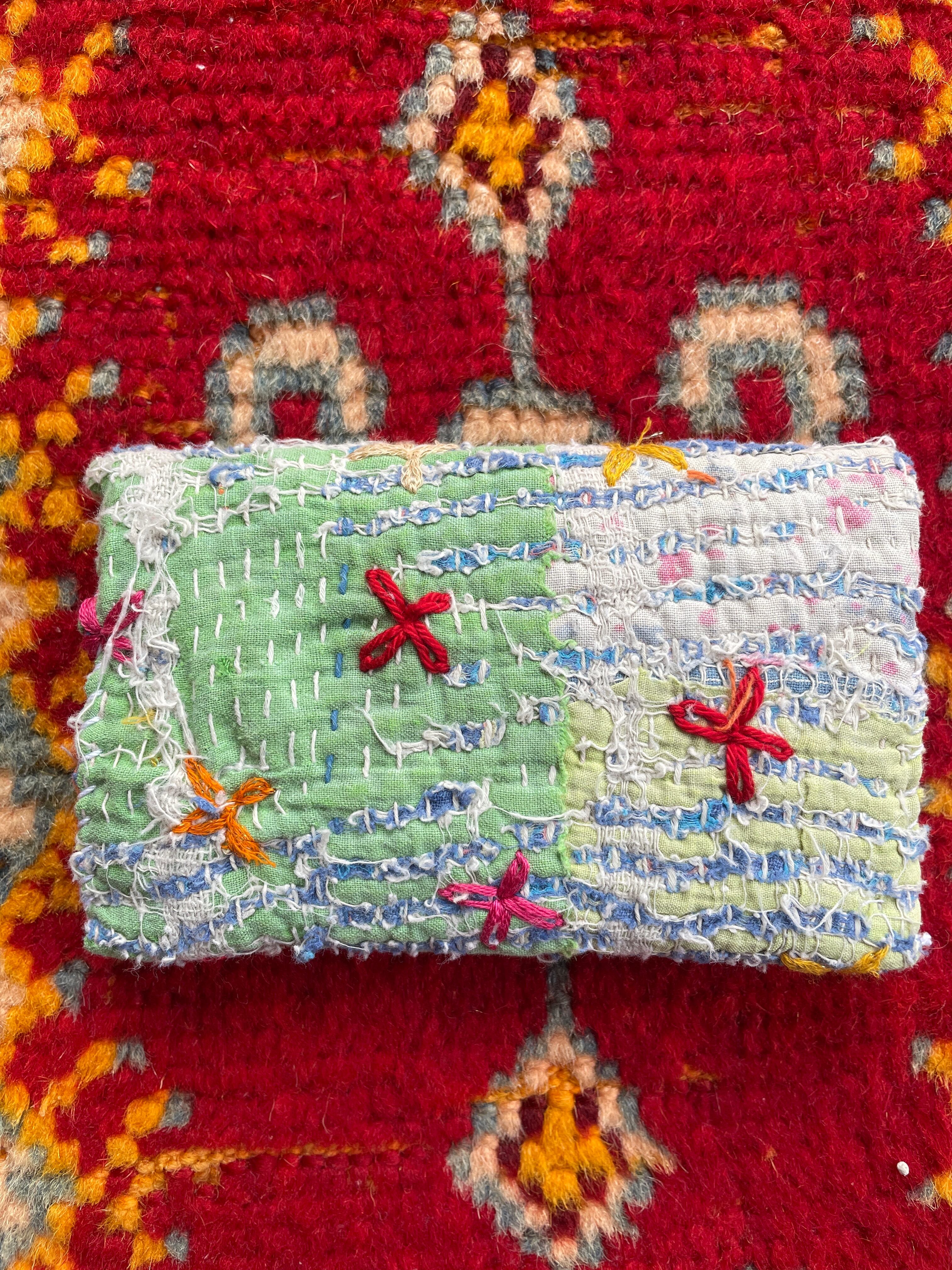 vintage kanthaのハギレ使った小さなポーチ。