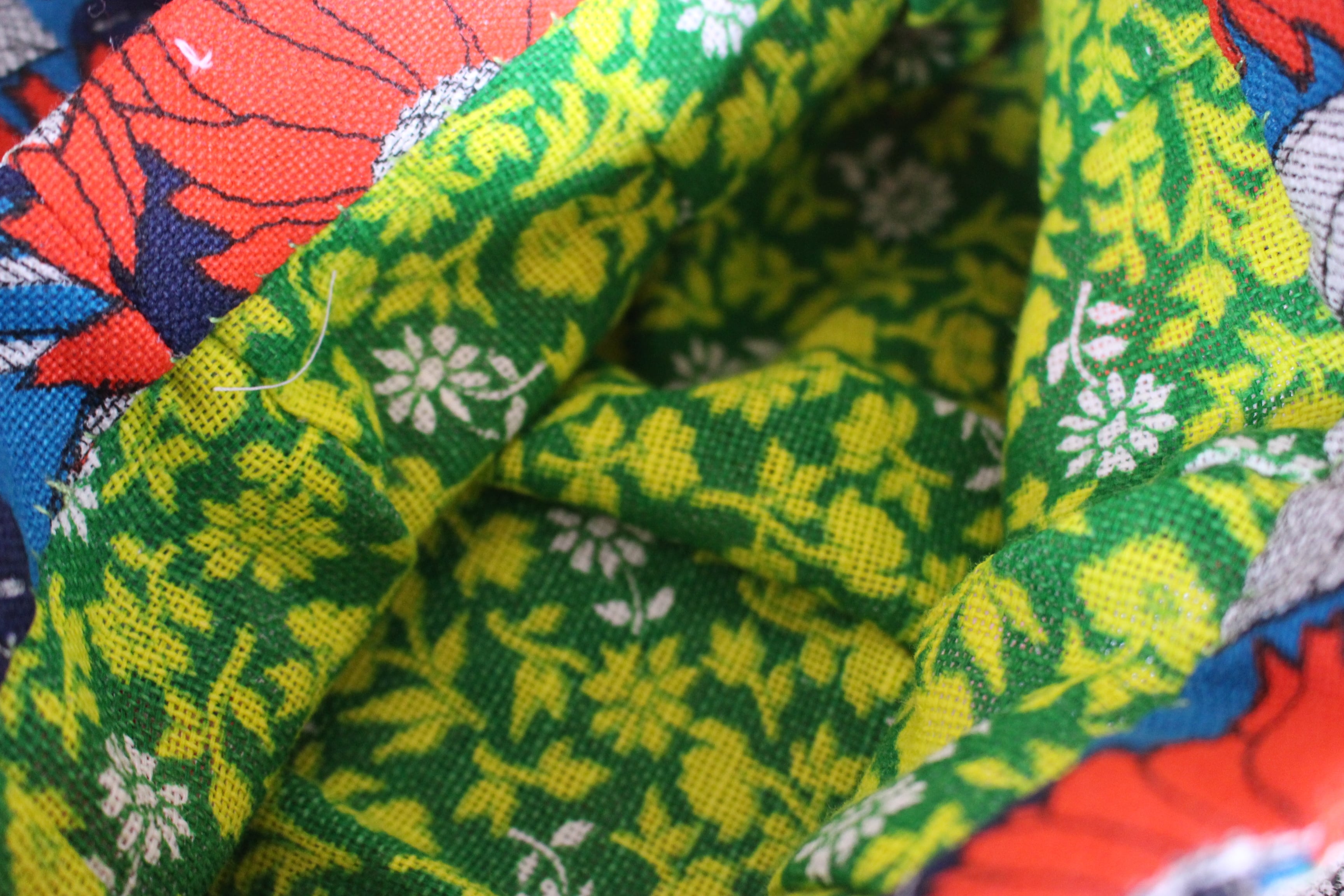 フチにはインドの刺繍リボンをつけて花柄と花柄の組み合わせにしました。