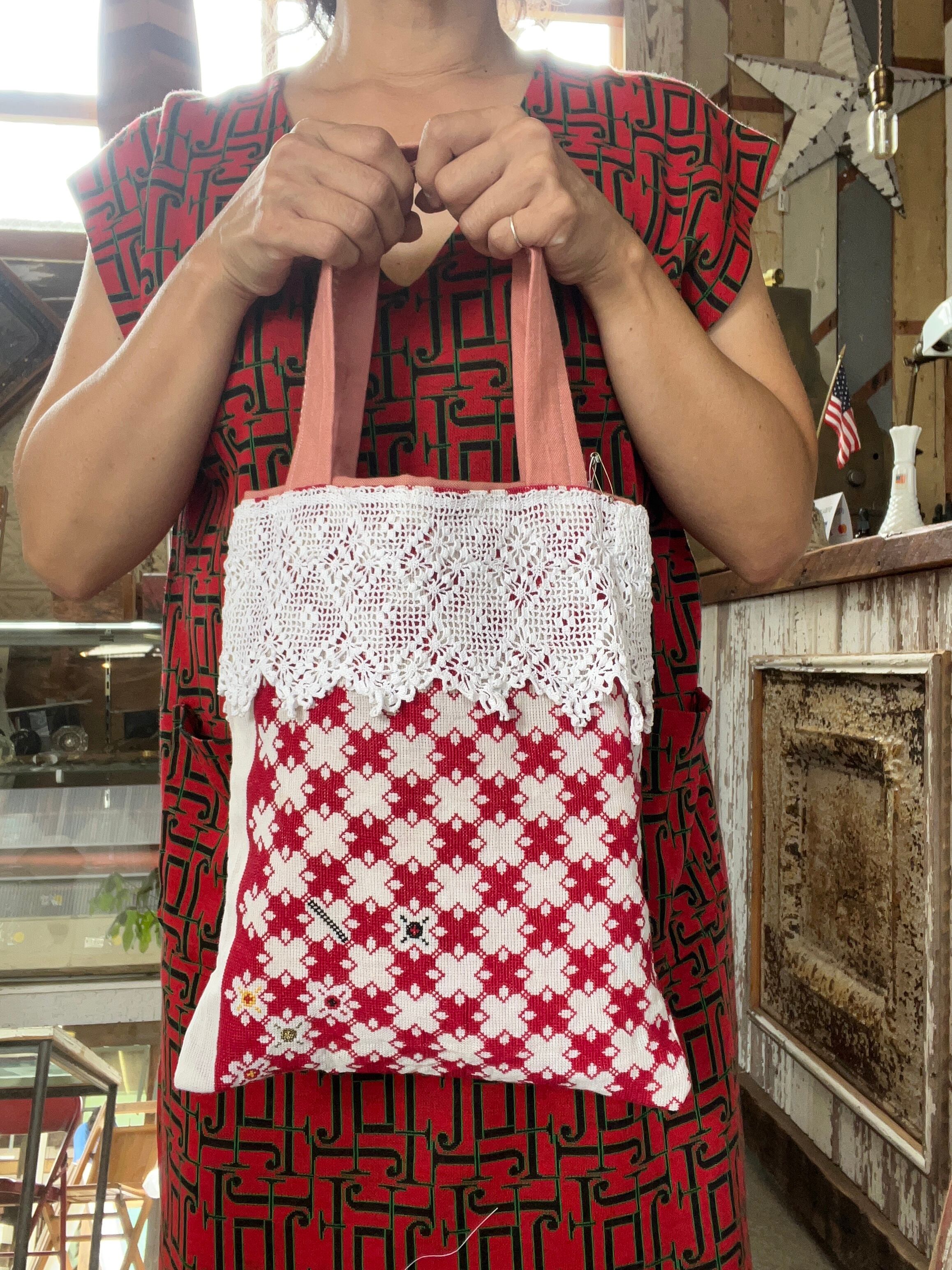 embroidery red&white bag