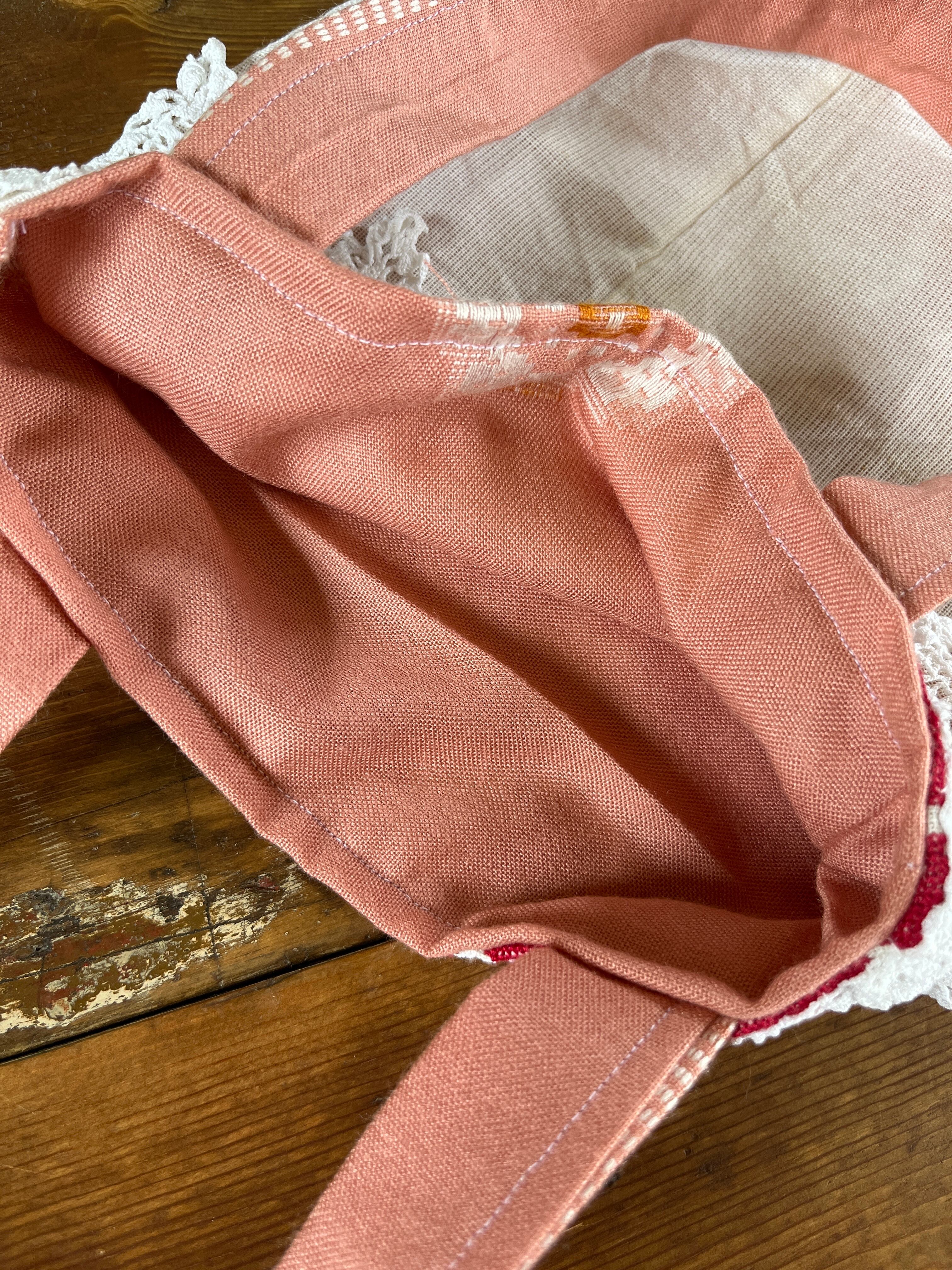 裏地はピンクのキッチンクロス。