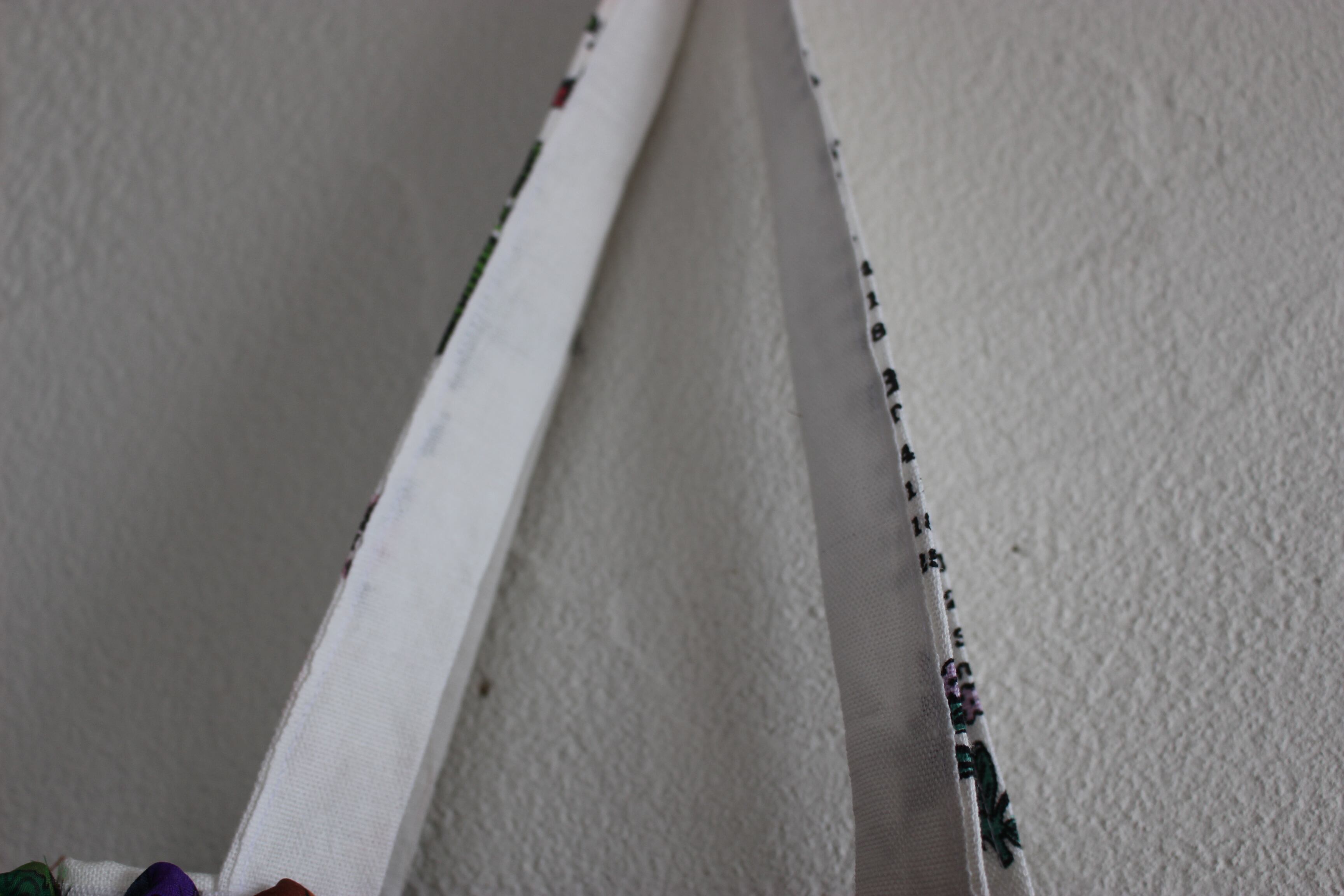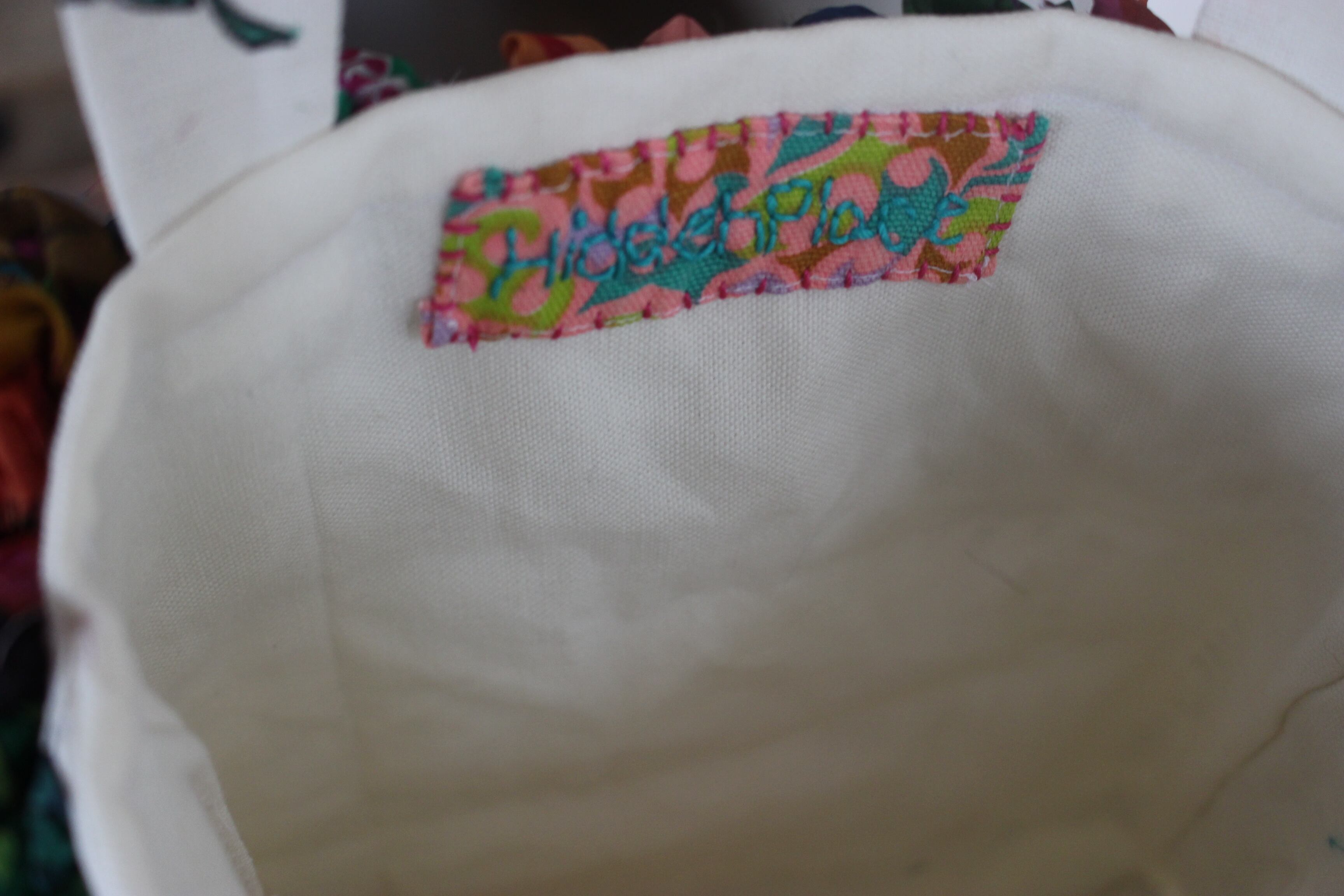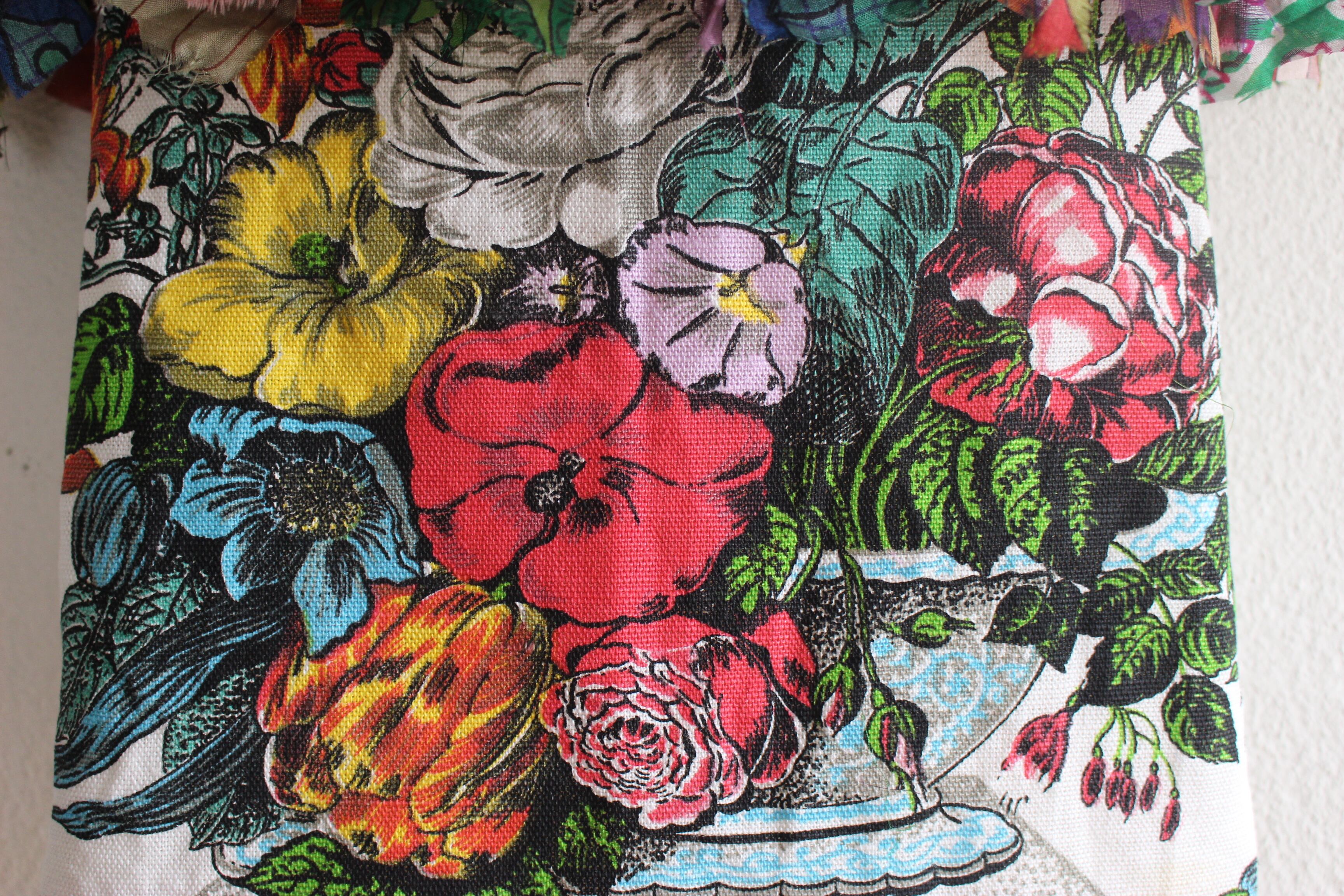 ふさふさと可愛らしいハギレの古き良きデザイン模様の組み合わせが世界で1つのbagになりました。
