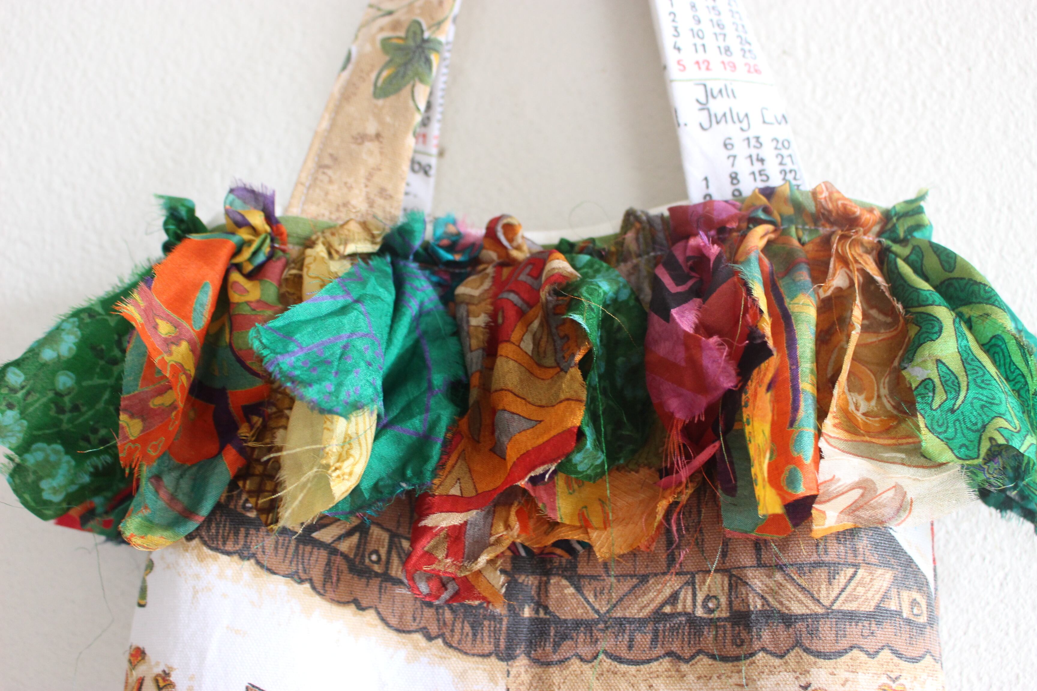 周りにはインドのサリーやハギレを使用してフリンジに見立てました。