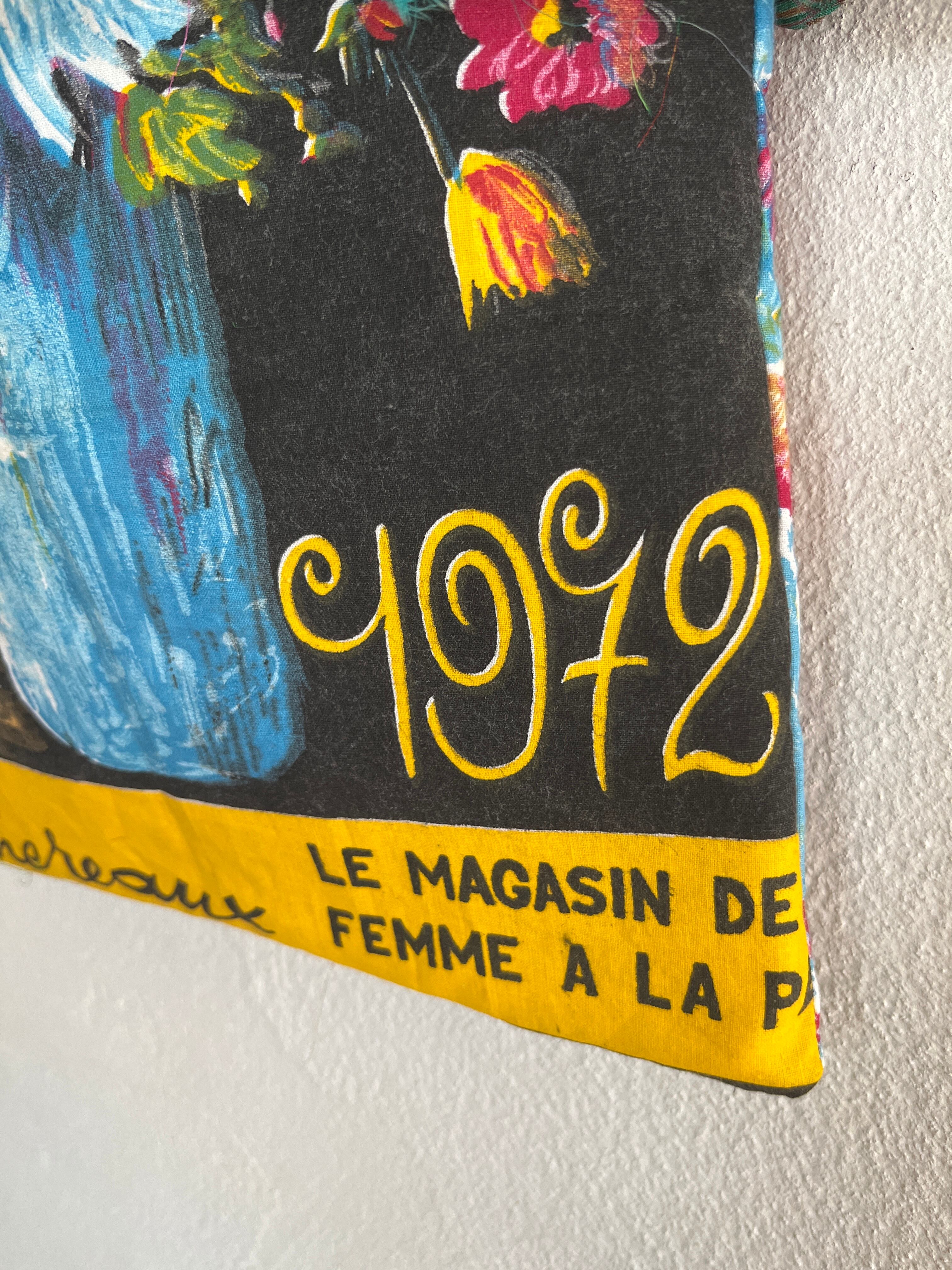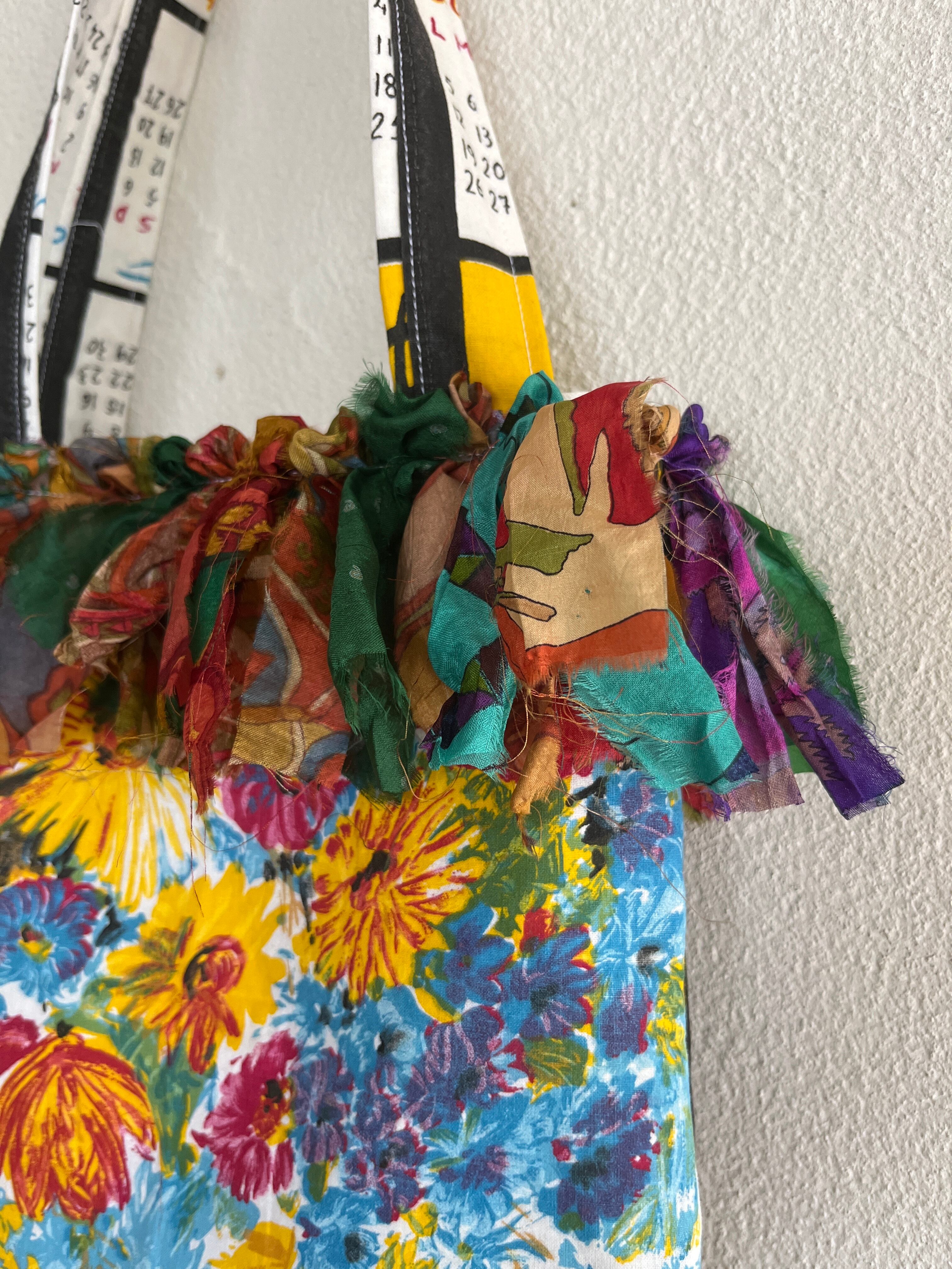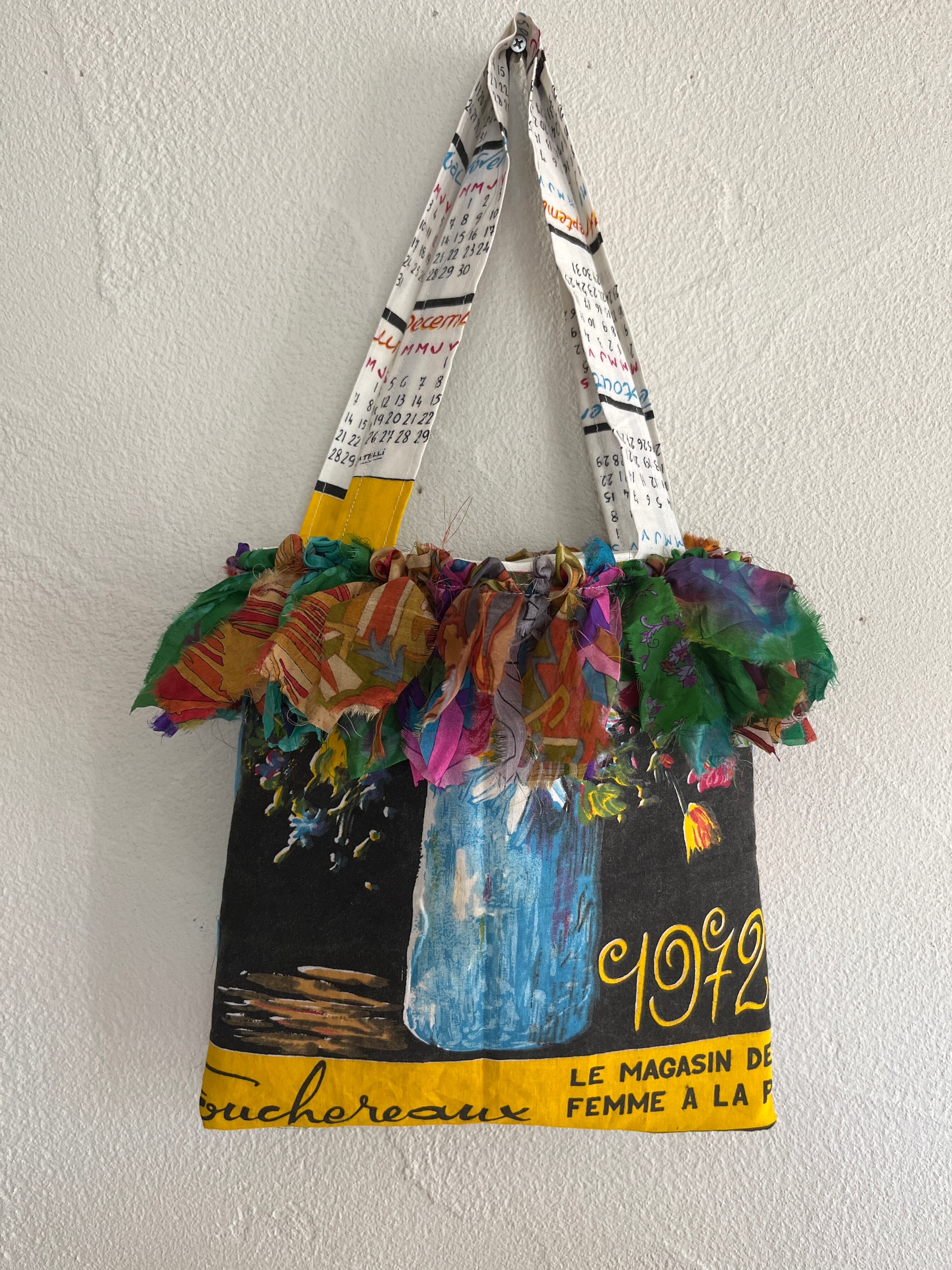 1972年古いカレンダークロスを使いbagを仕立てました。1枚の生地から仕立ているので無駄がなく使った事も自慢の一品です。