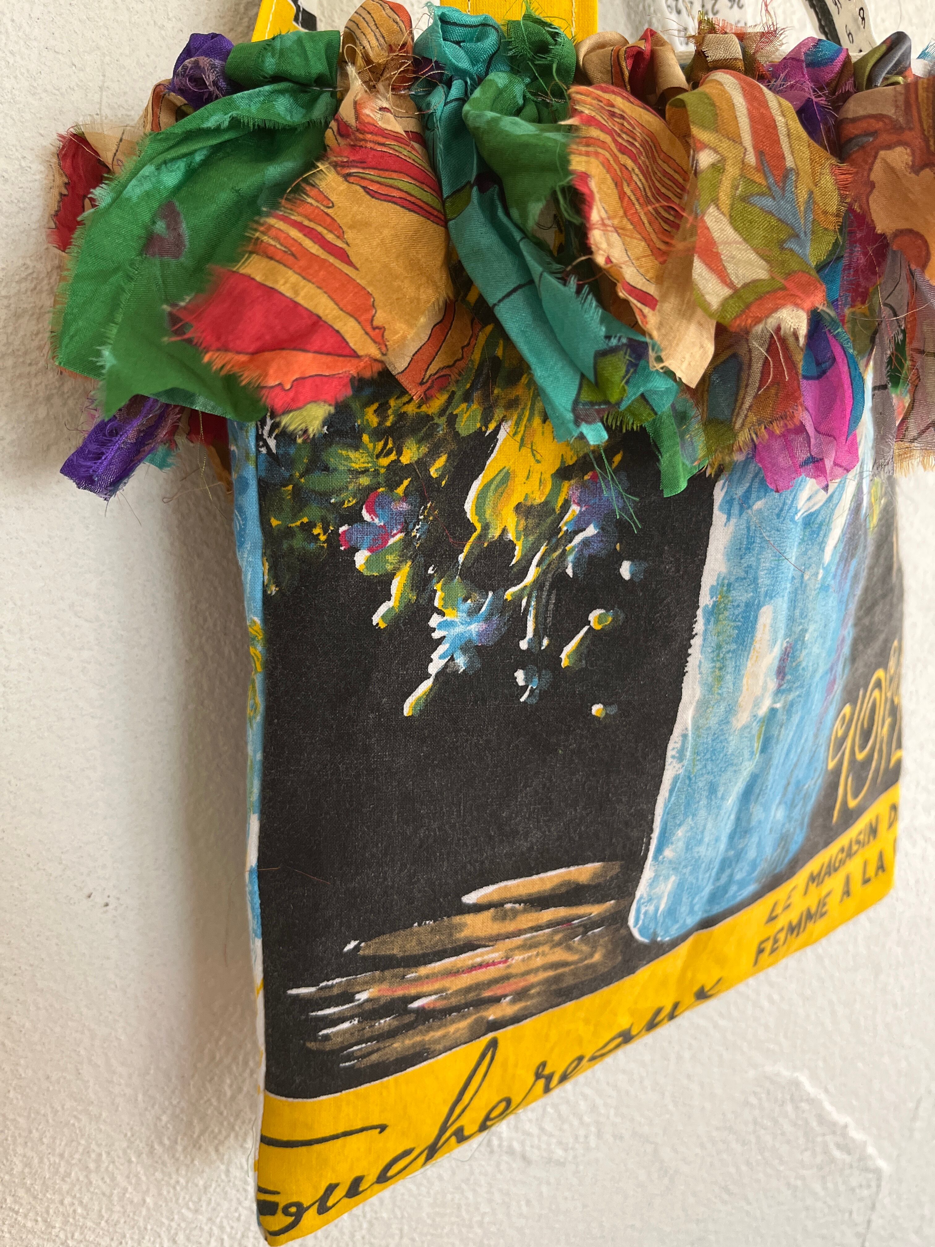 ふさふさと可愛らしいハギレの古き良きデザイン模様の組み合わせが世界で1つのbagになりました。