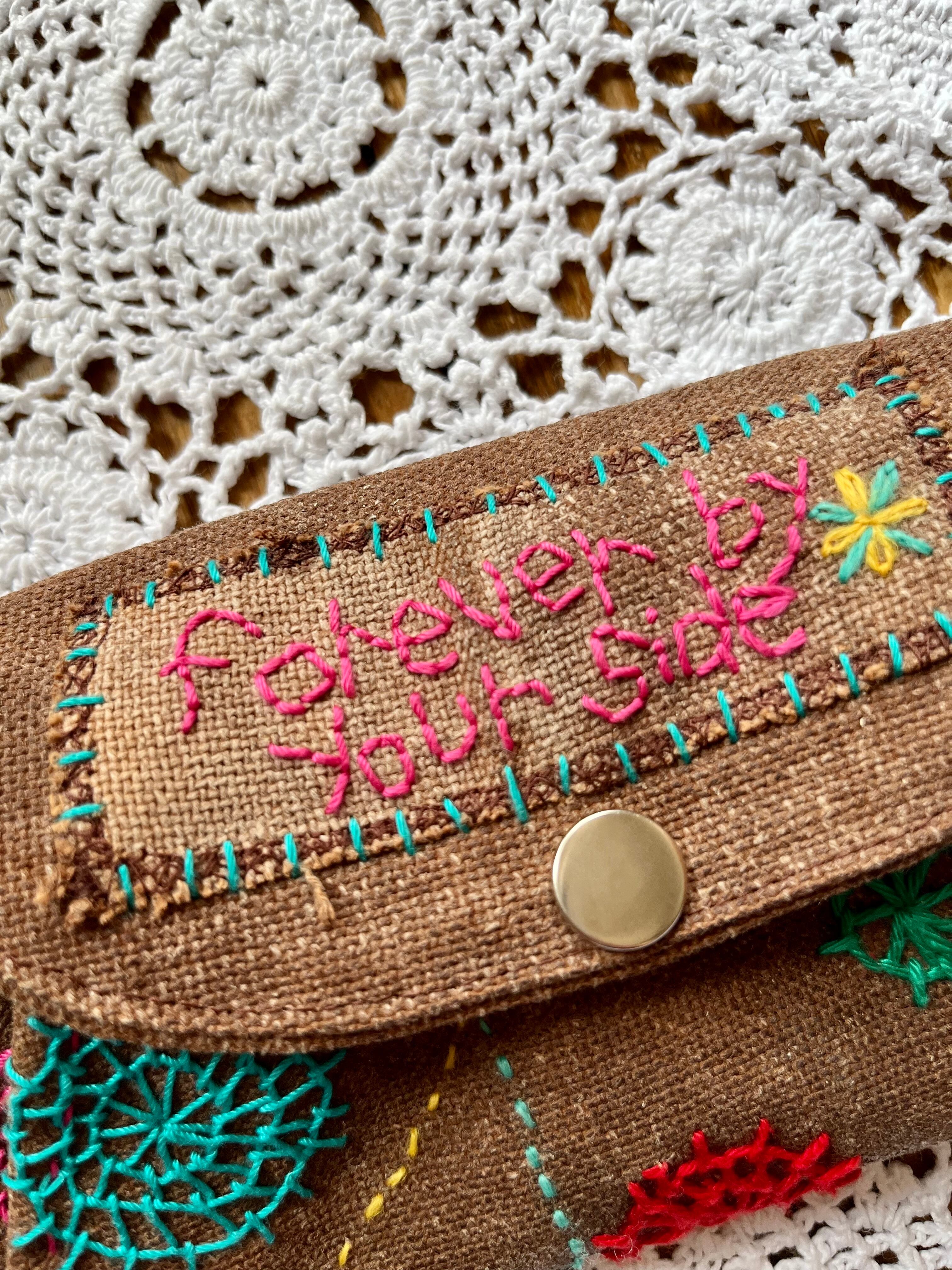 フタには「forever by your side」(ずっとそばに)を刺繍をしました。