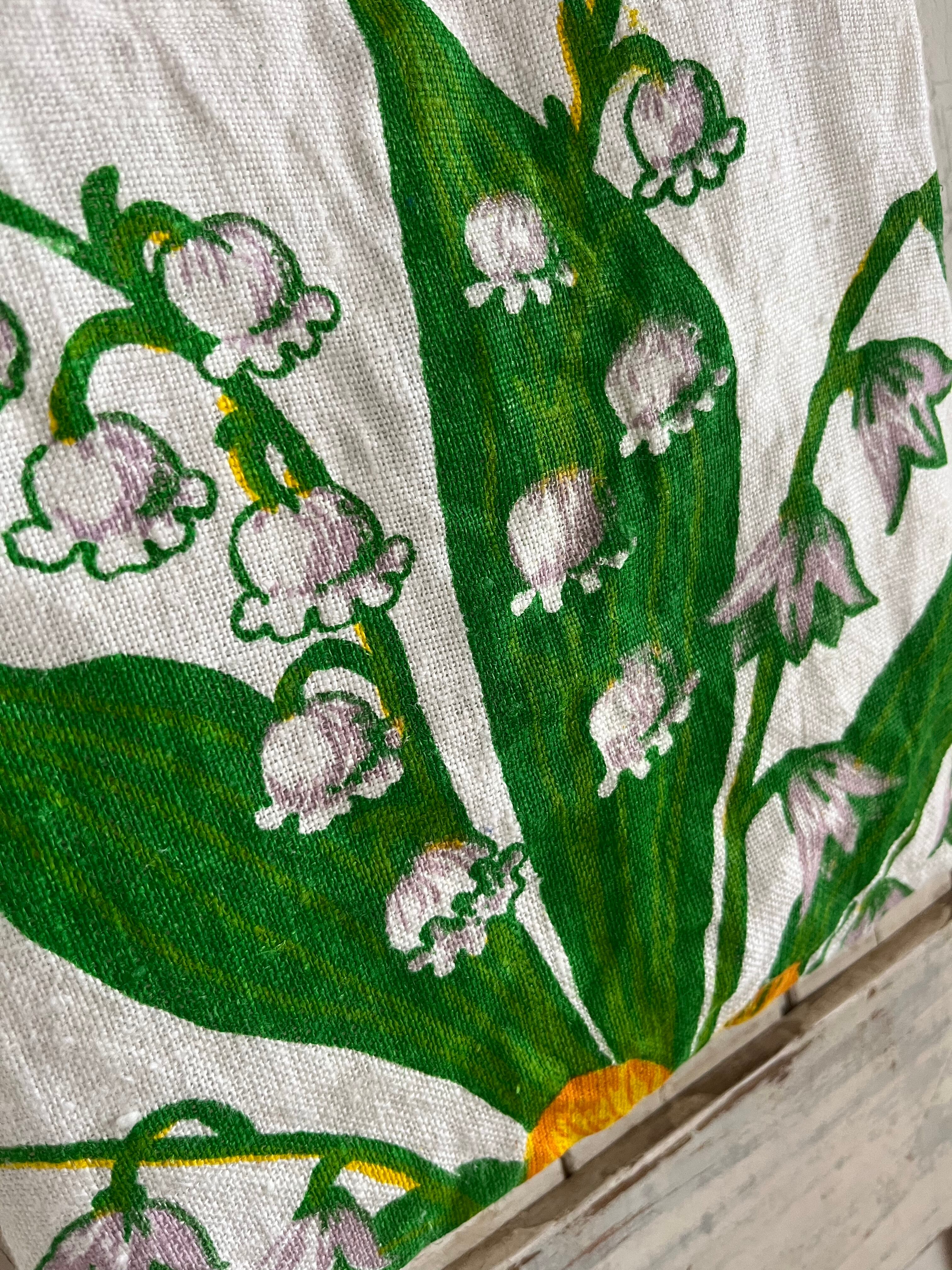 すずらんの絵柄が可愛らしいキッチンクロスをリメイクしたbag。