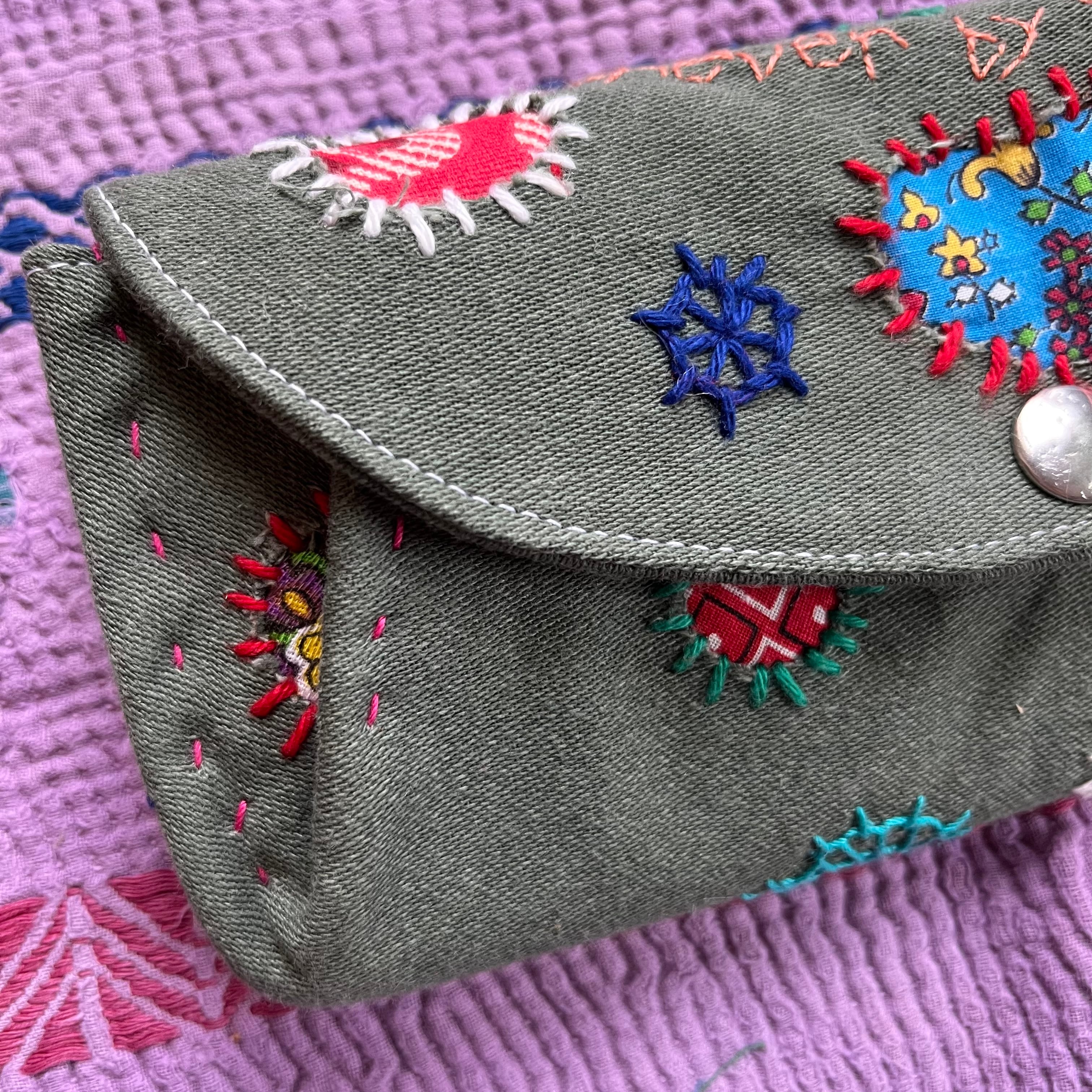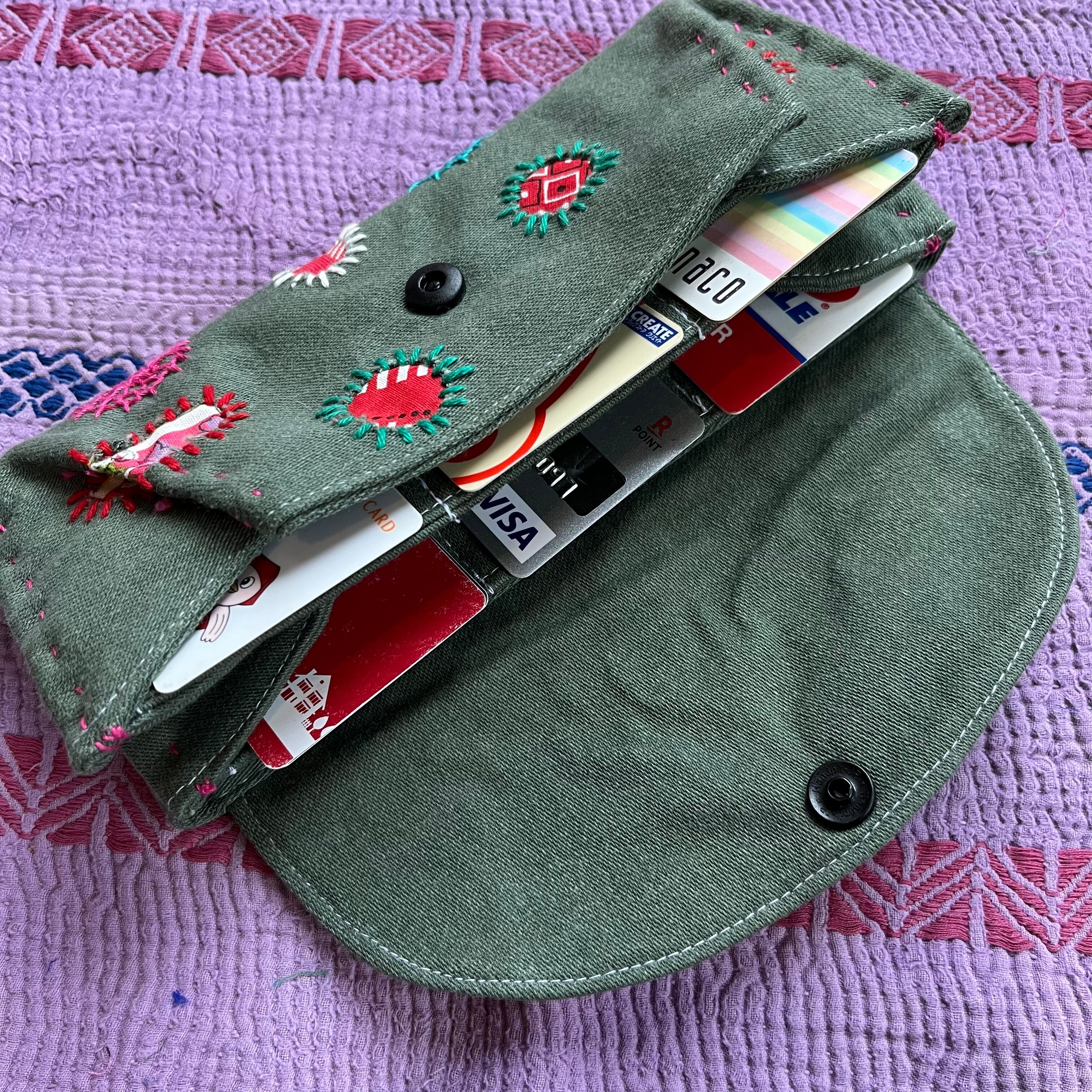 khaki fabric embroidery long wallet