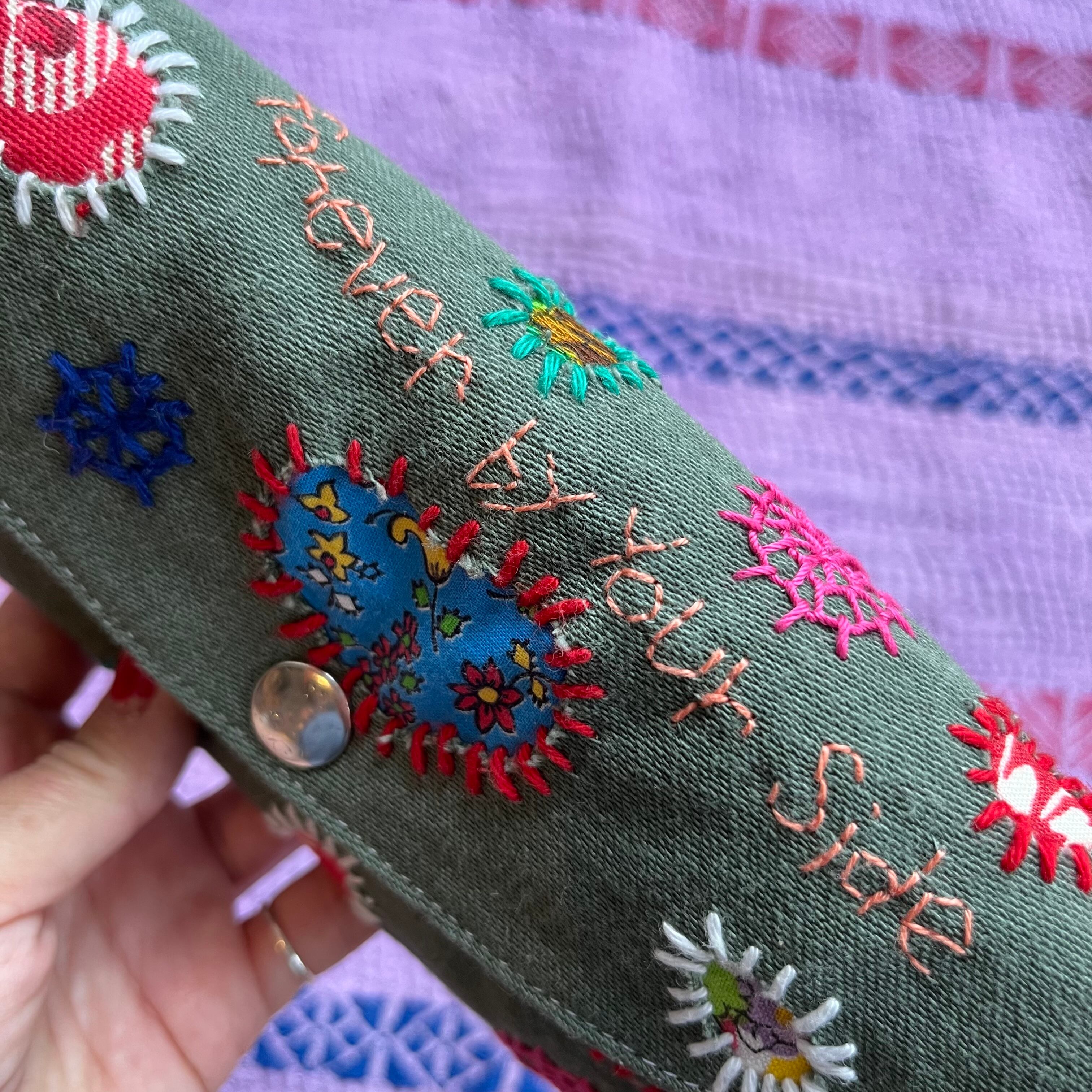 の言葉を刺繍しています。