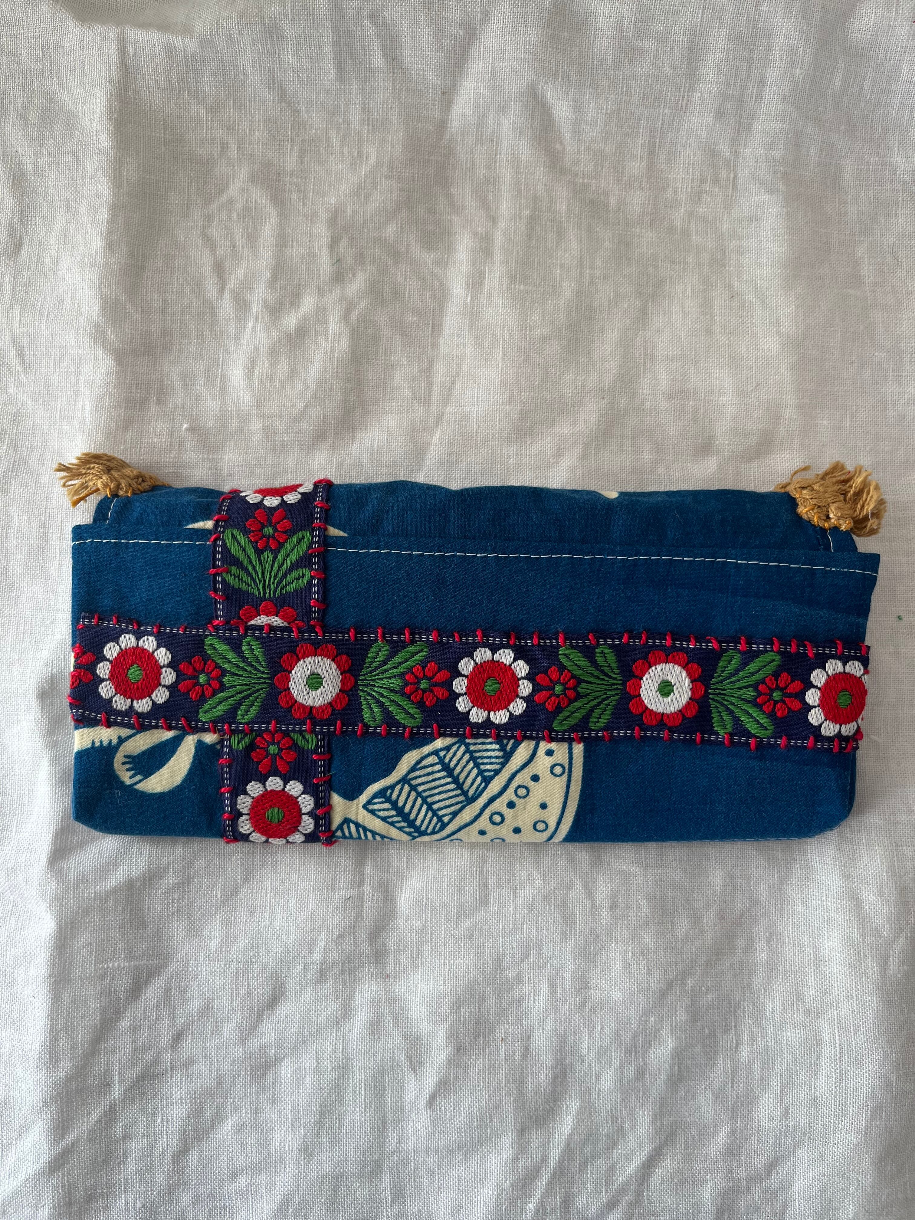 ヨーロッパの古いパンツをリメイクした長財布になります。絵柄は傘でした。