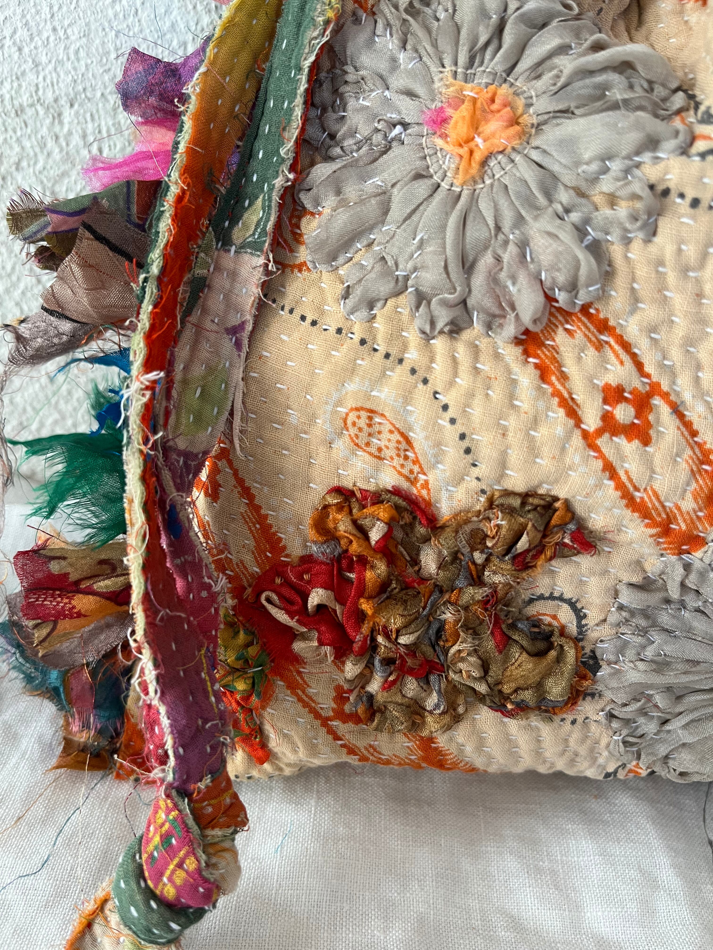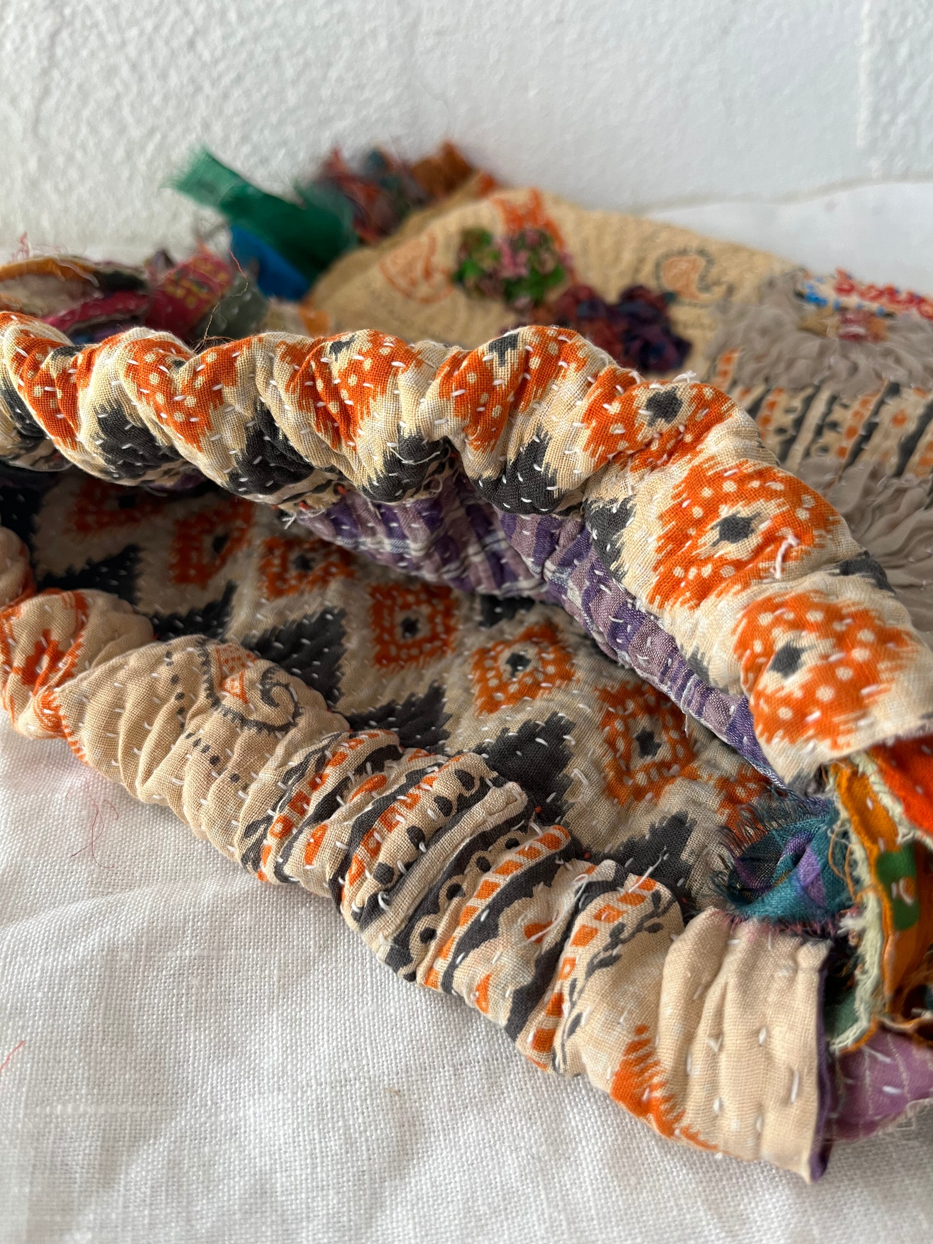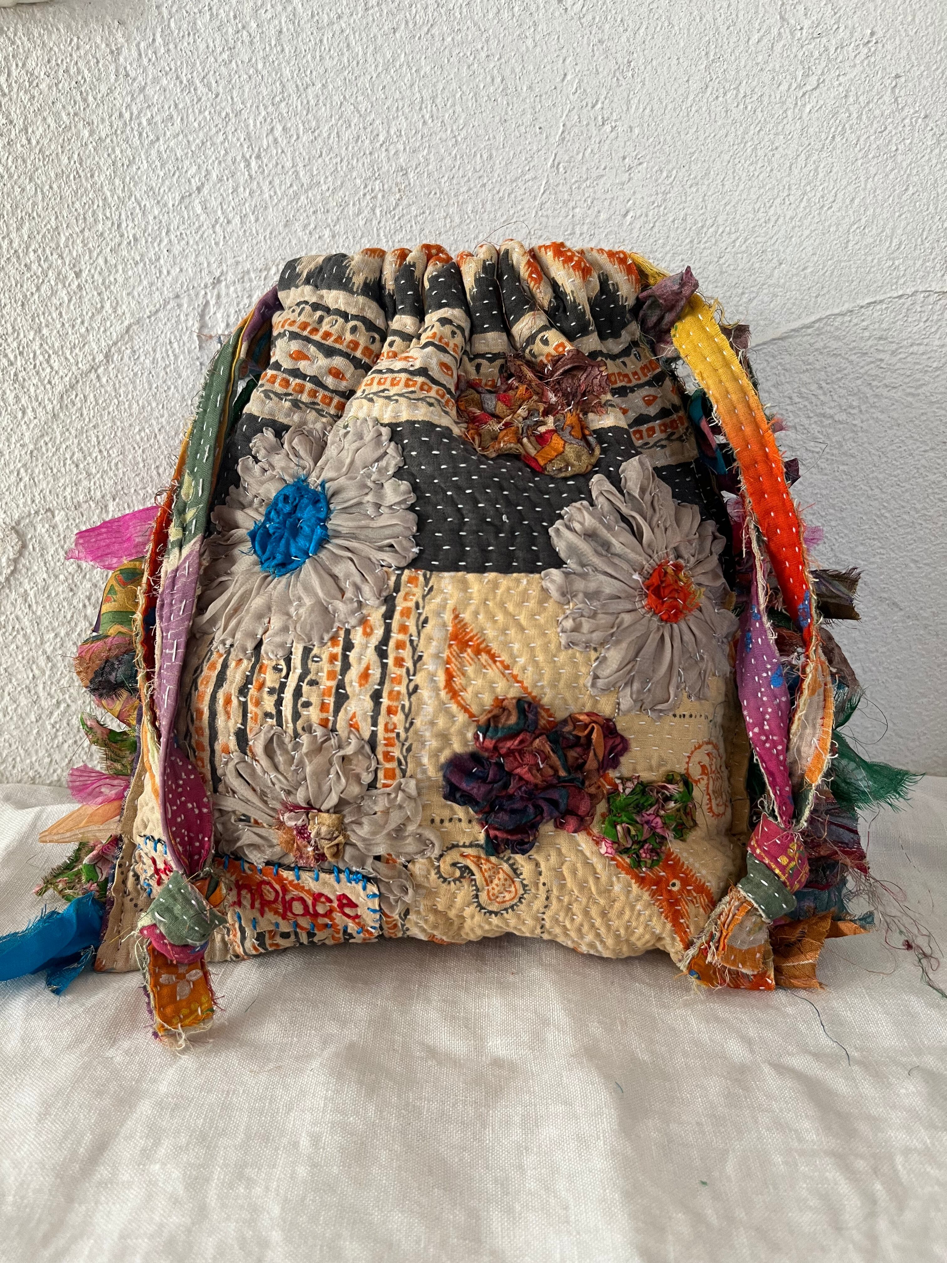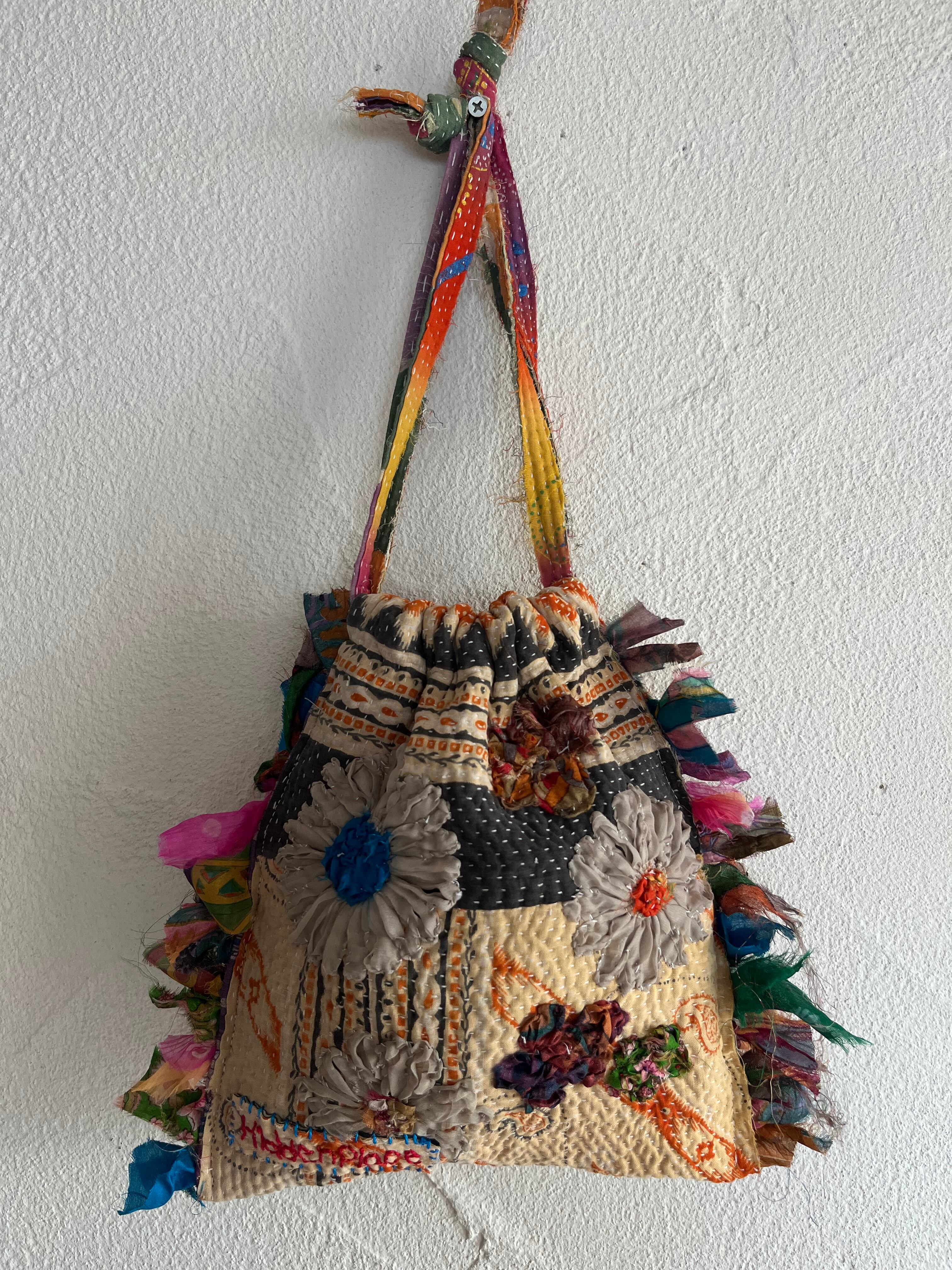 vintage kantha small bag beige