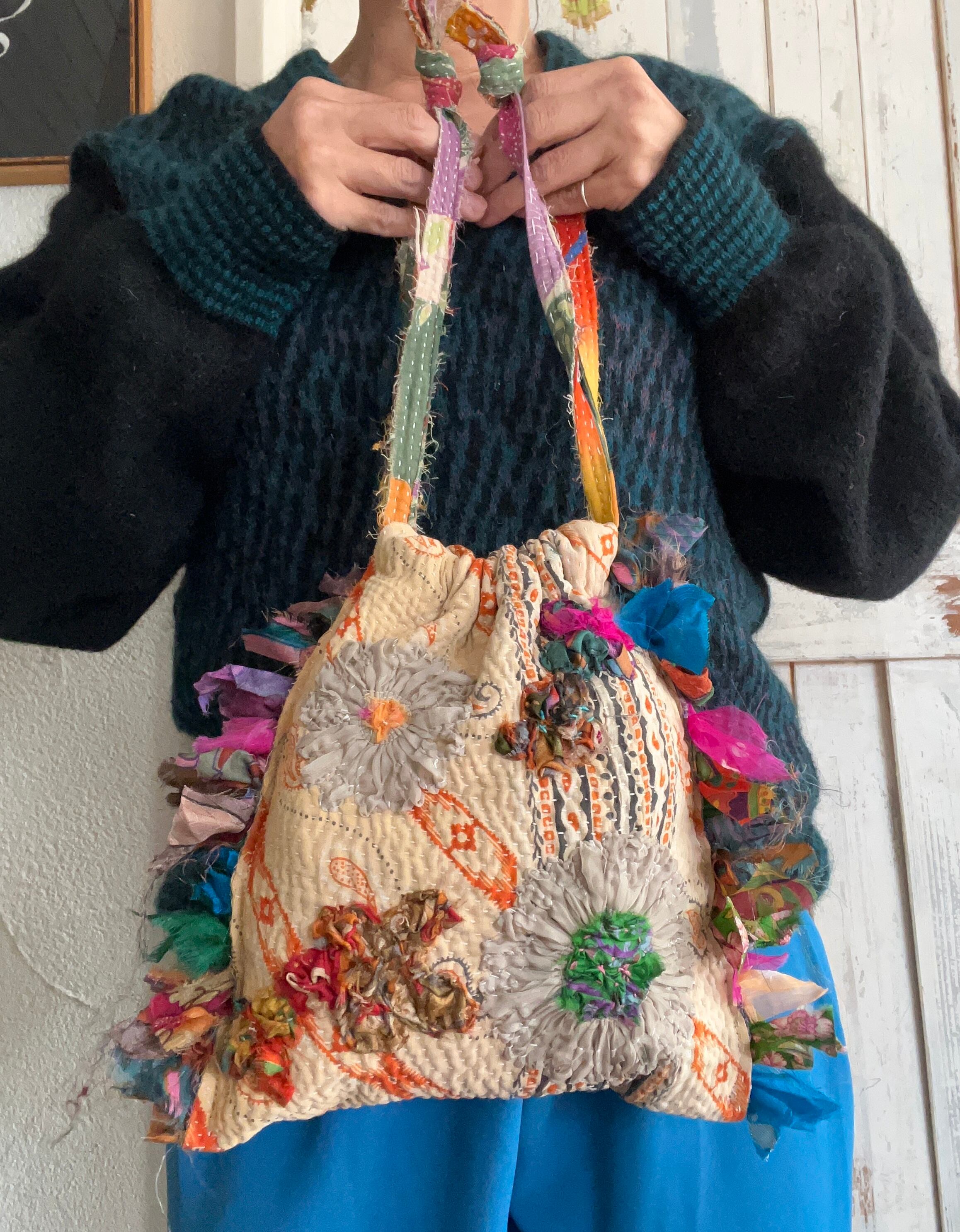 ヴィンテージカンタ生地で製作した小さなバッグになります。