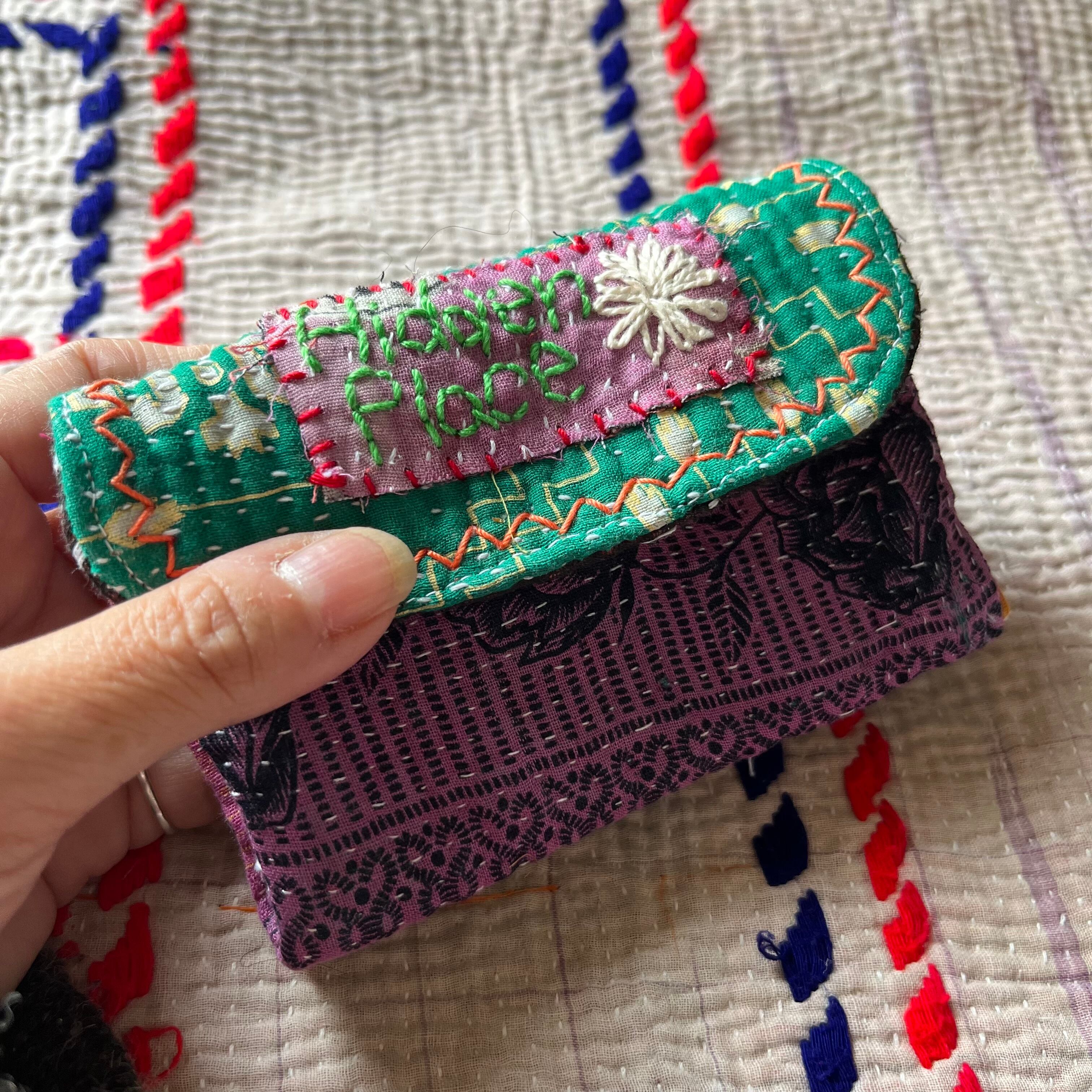 表には私らしくステッチと「Hidden place」とお花の刺繍をしました。