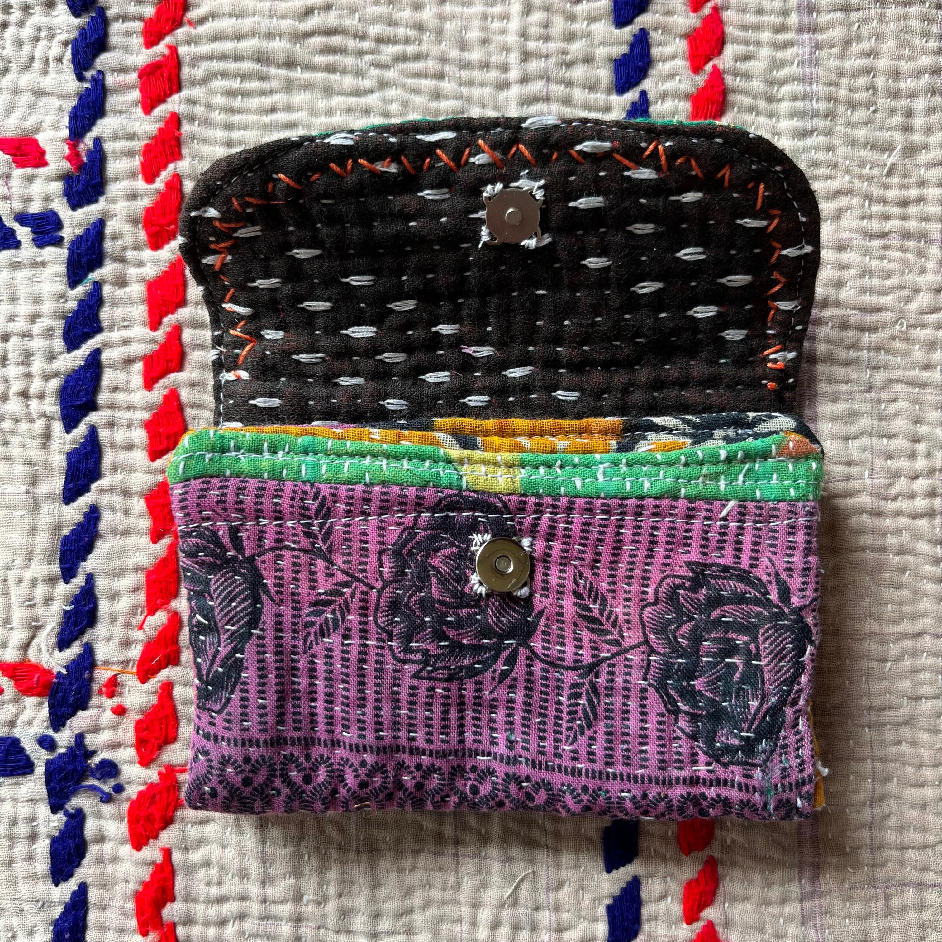 様々な色を組み合わせ、表,裏、中身も楽しめるお財布です。