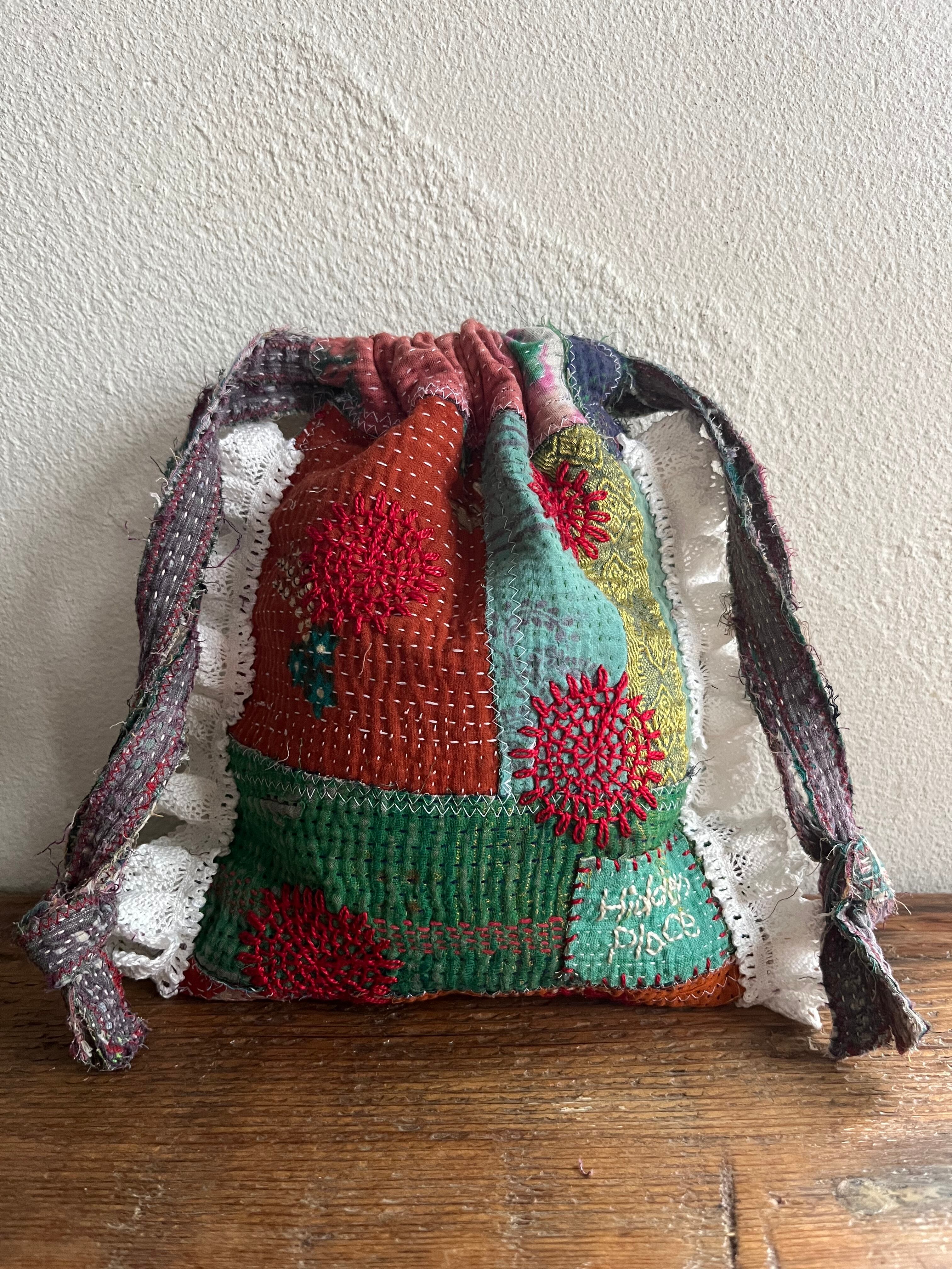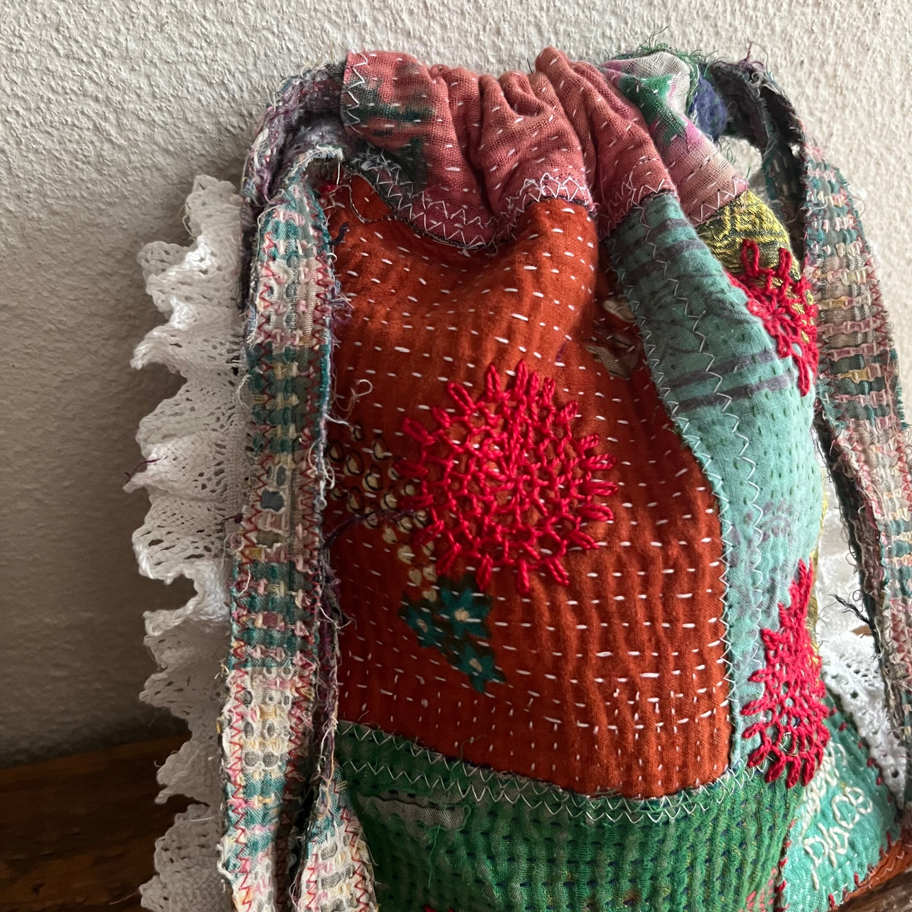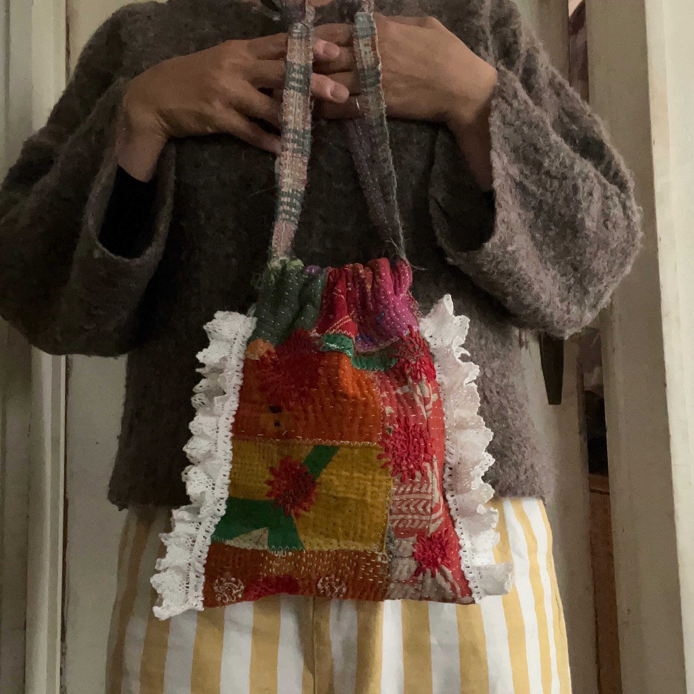 ヴィンテージカンタのハギレを繋ぎあわせたバッグになります。