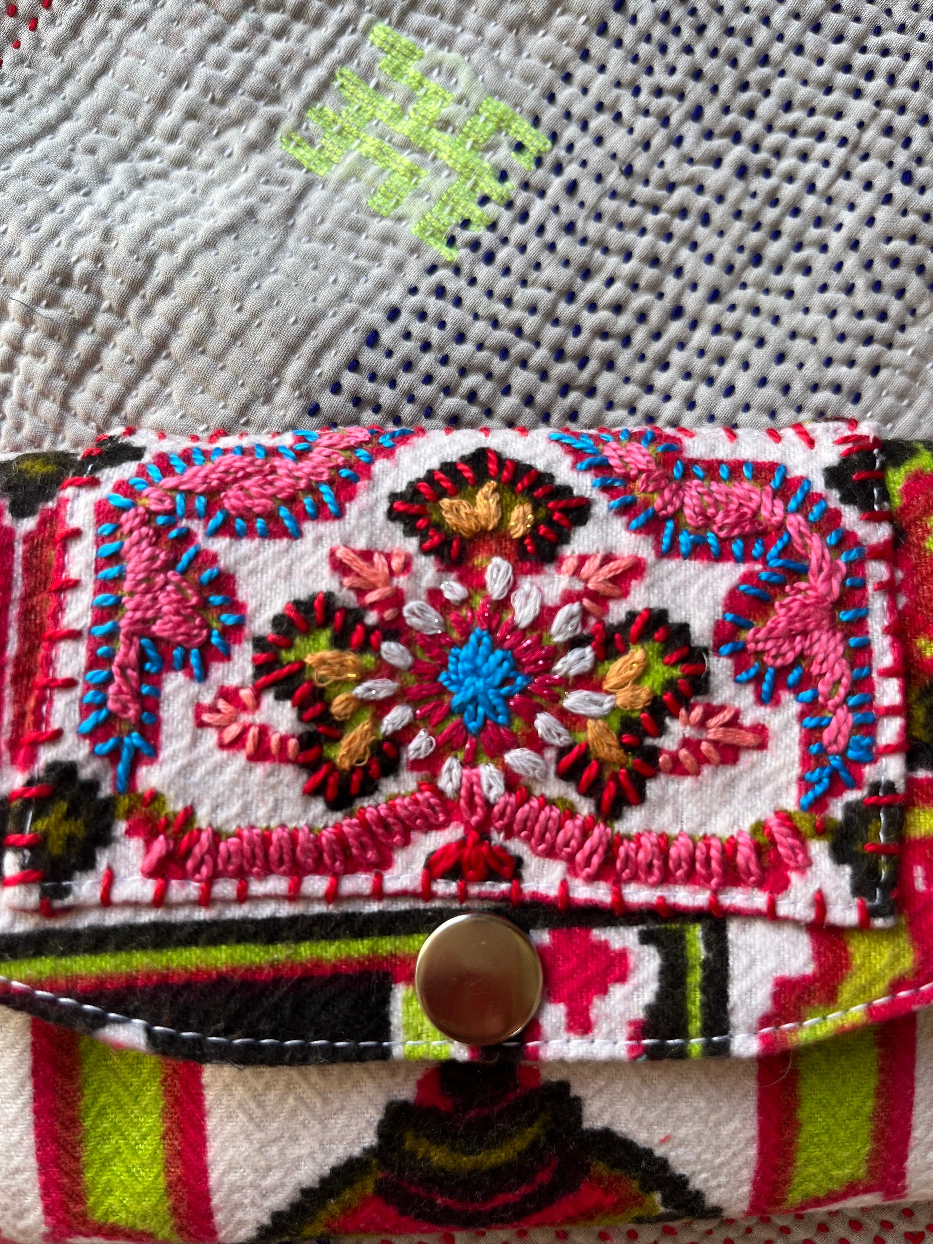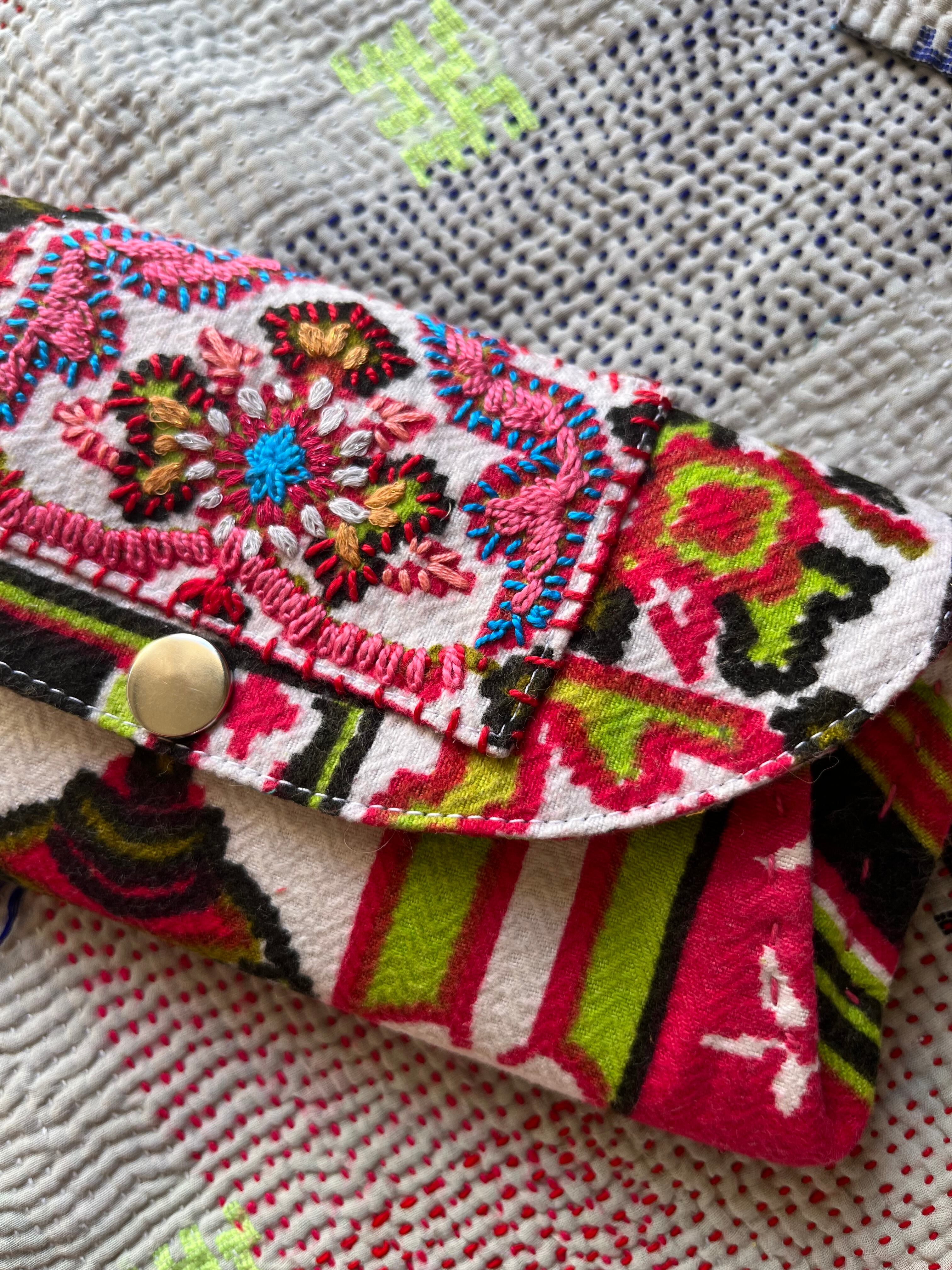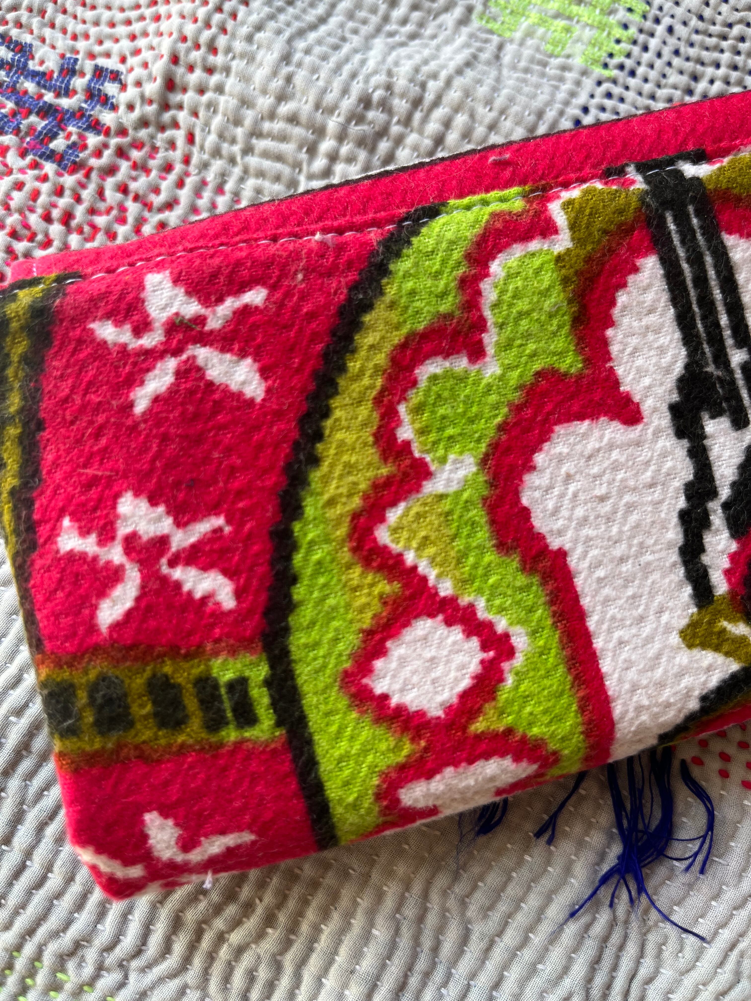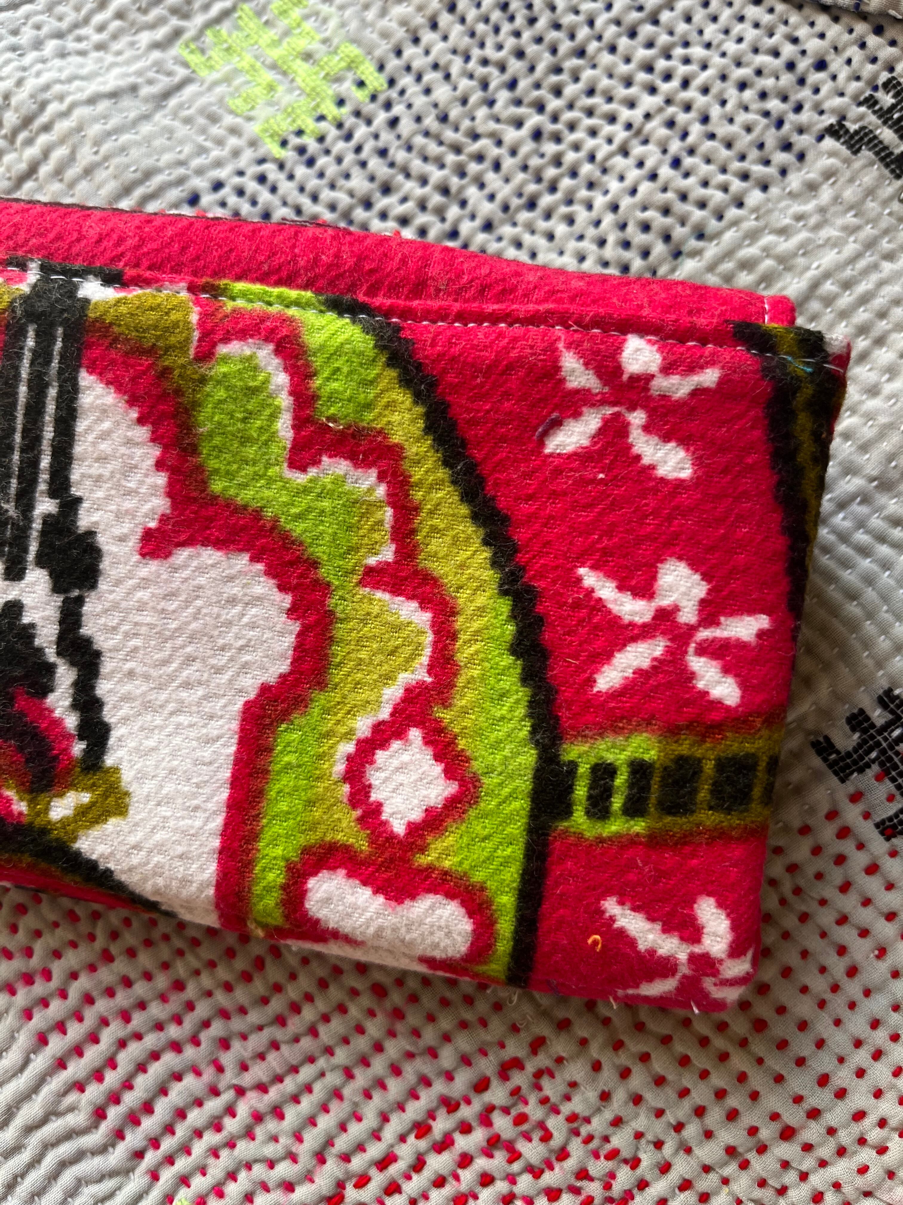 ピンクカラーがキュートなロングクロスをリメイクした長財布になります。