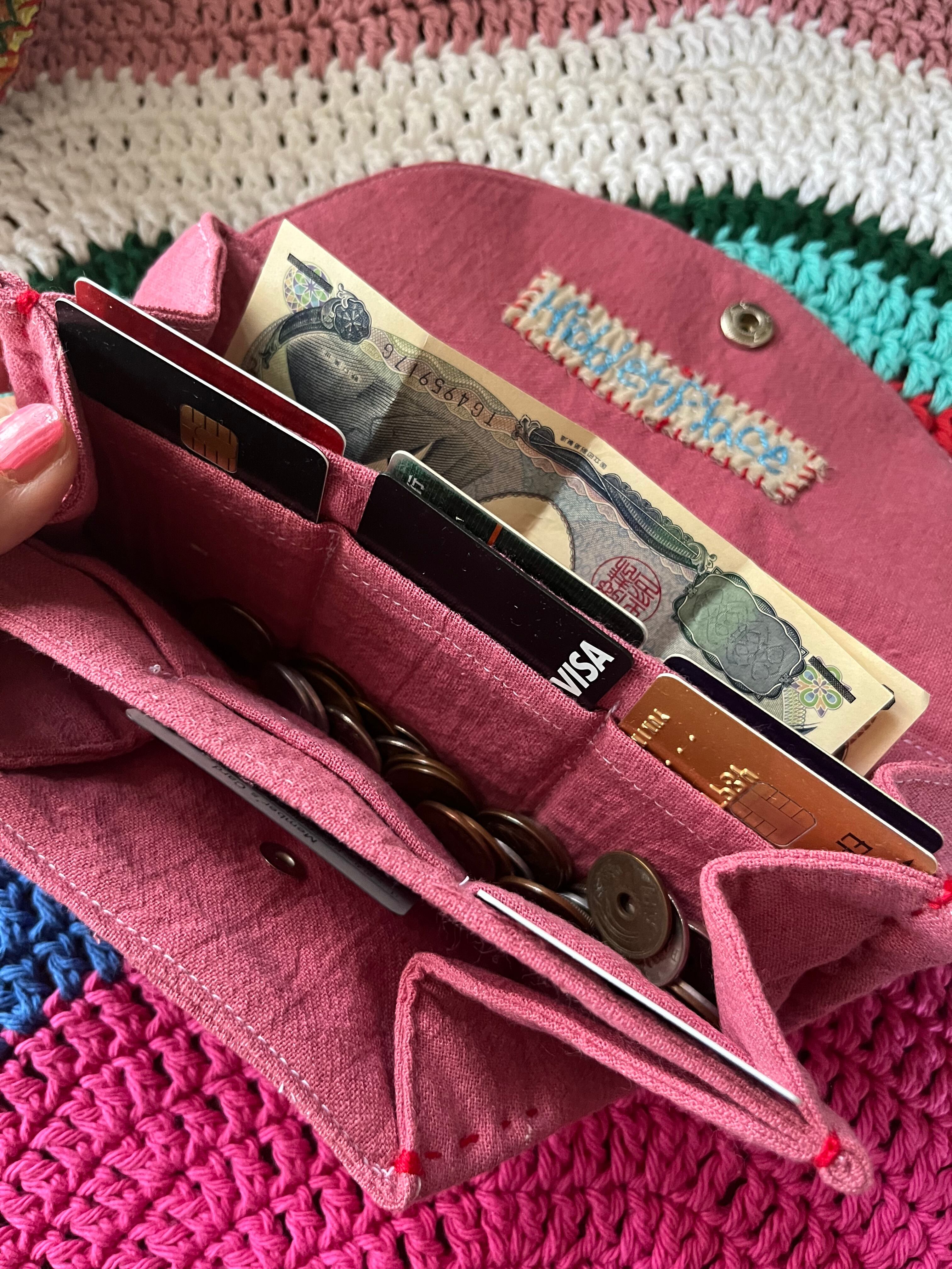 カードポケット12枚,真ん中にコイン入れ,お札入れがあります。