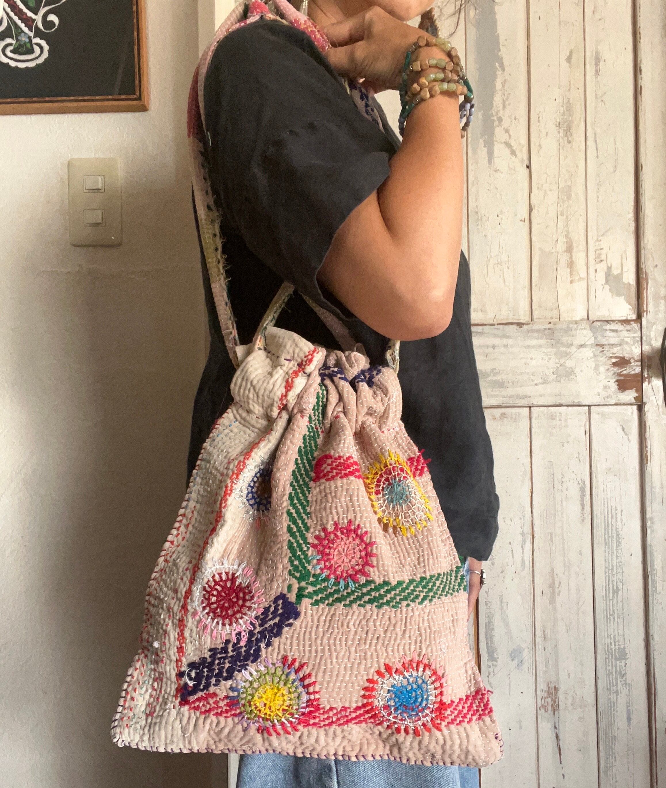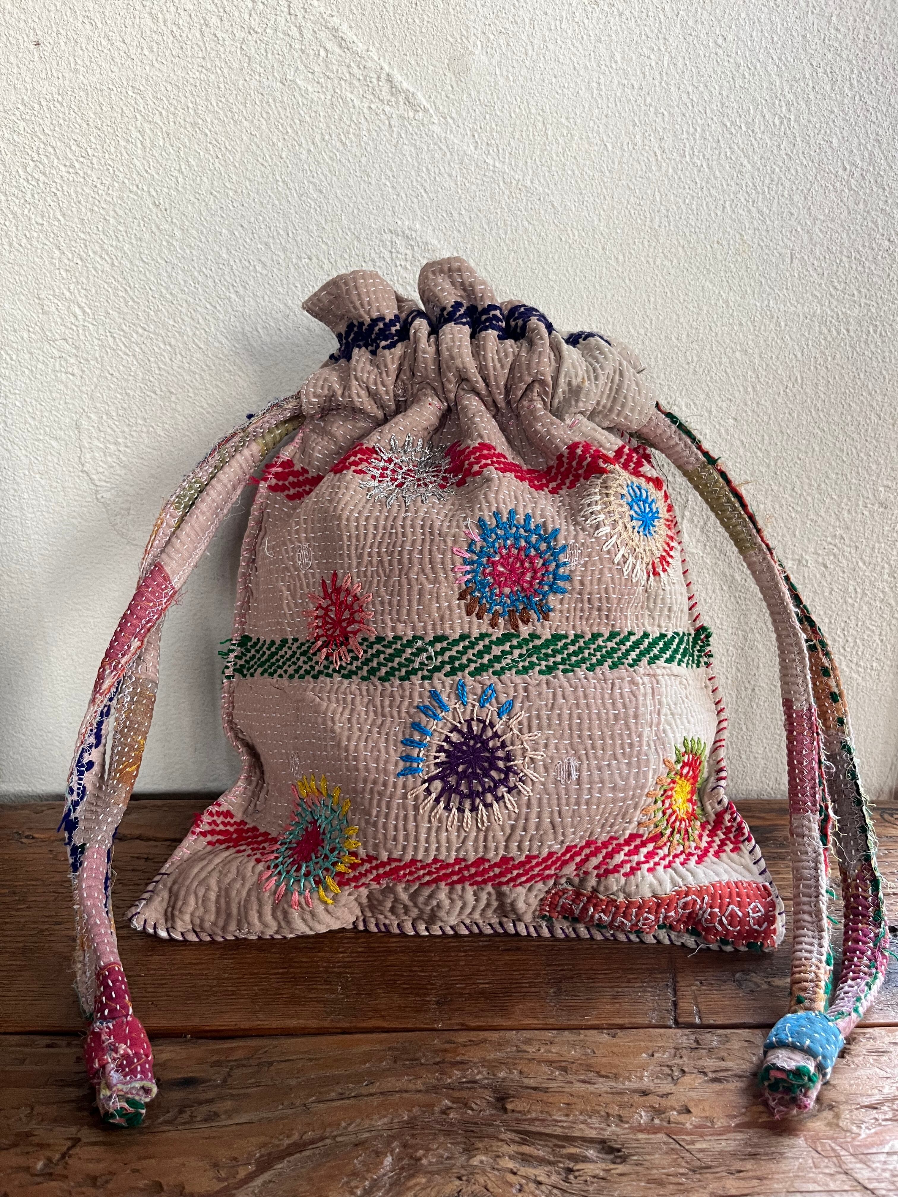 vintage kantha kincyaku bag