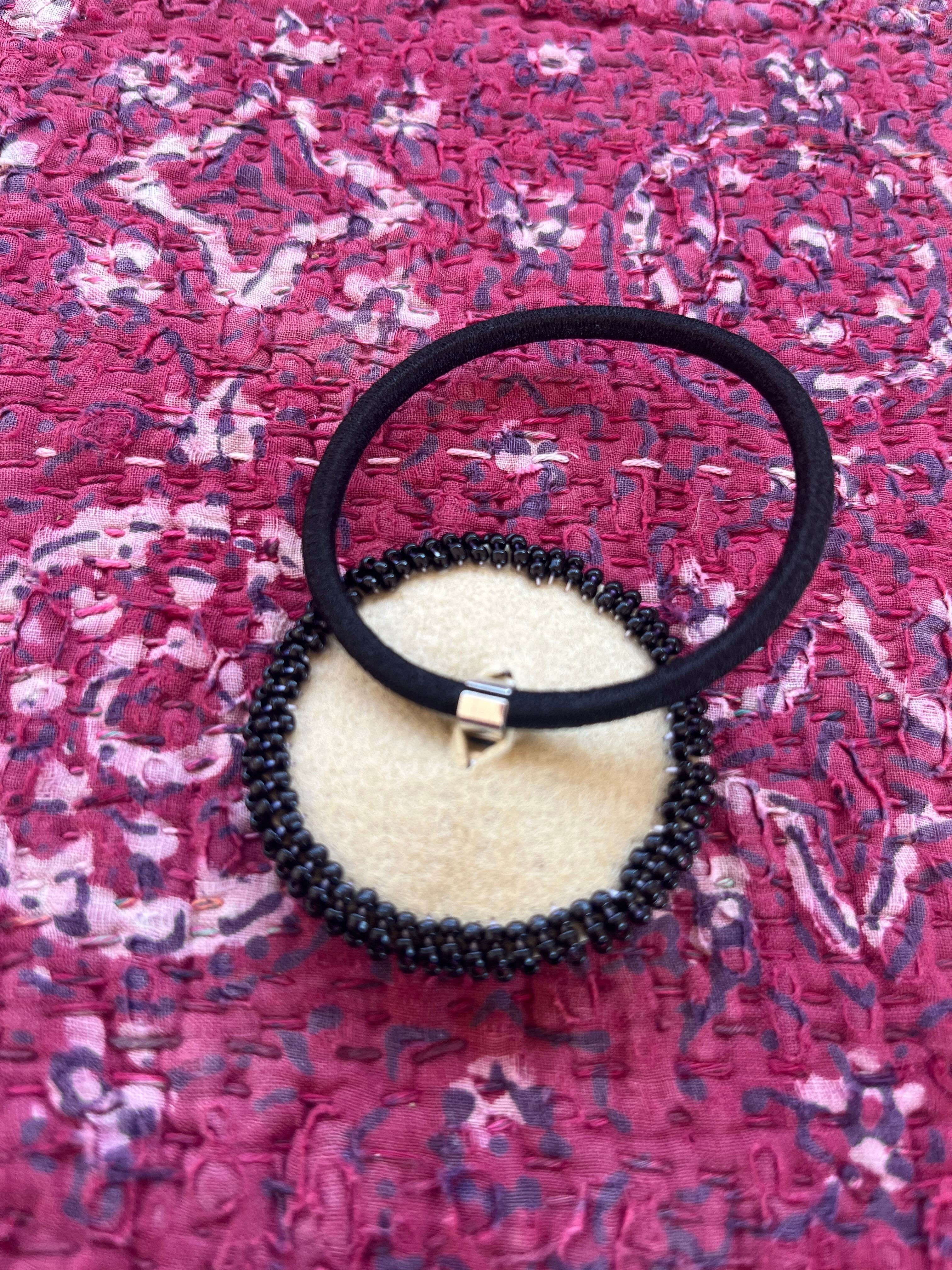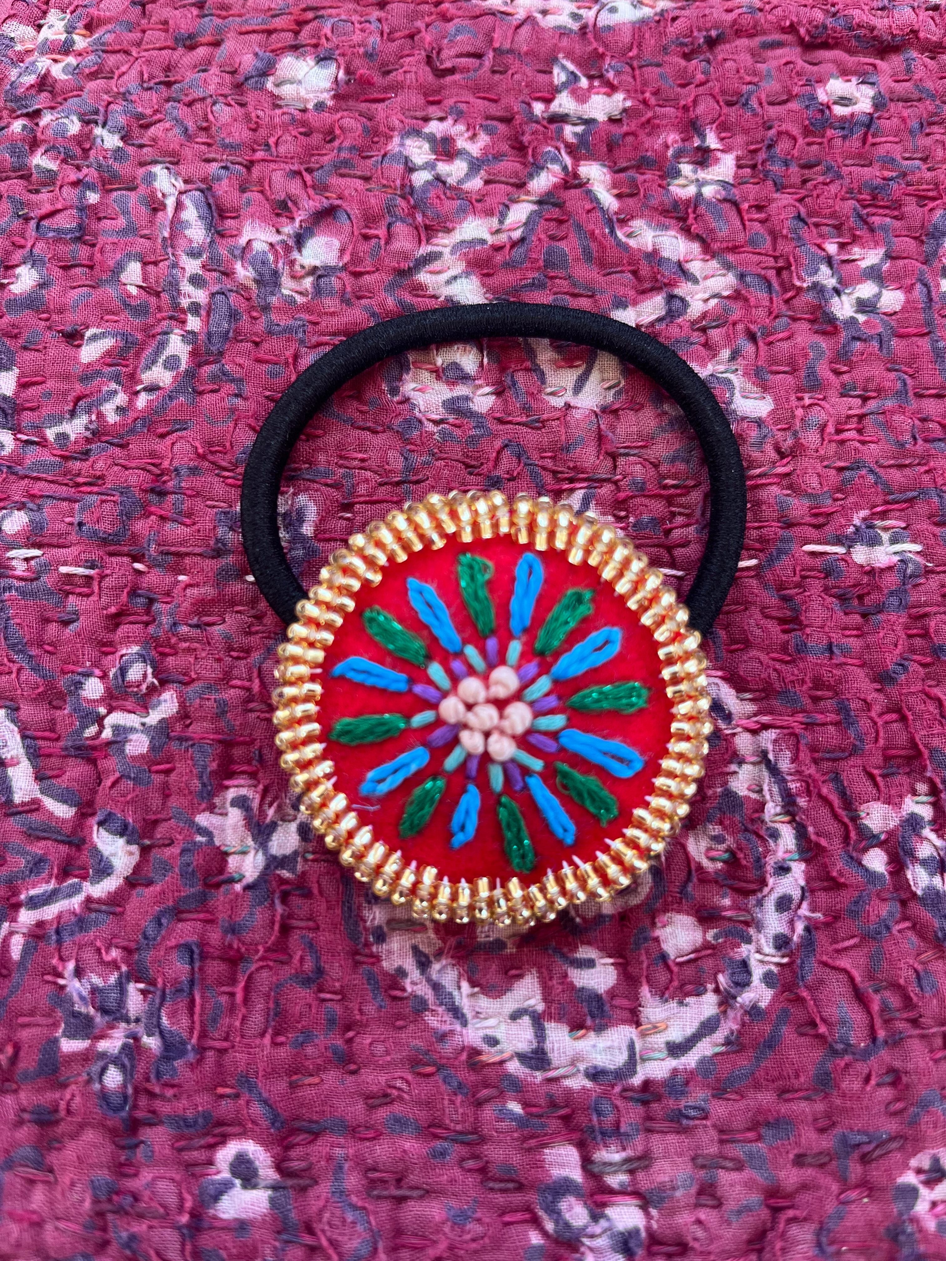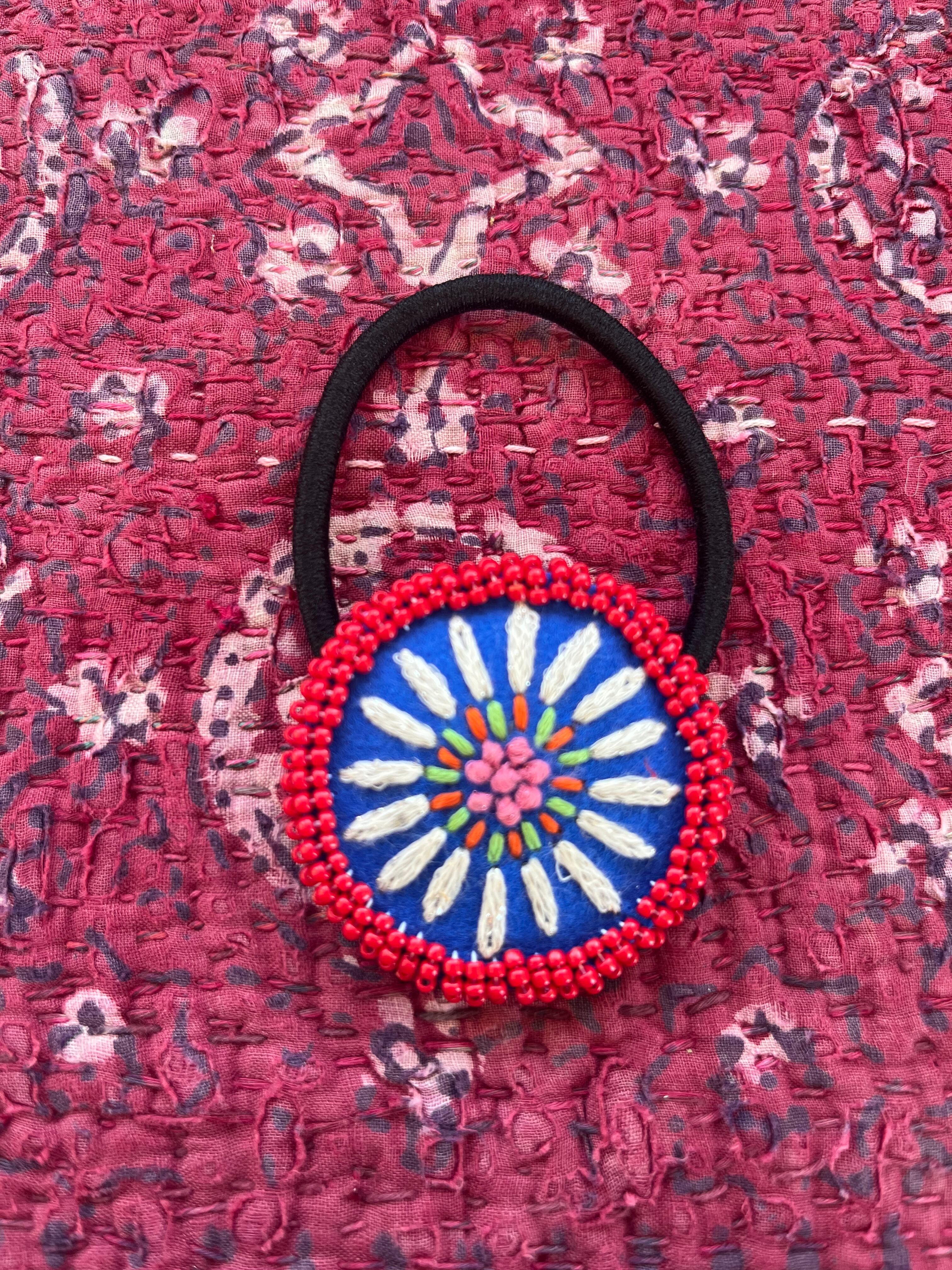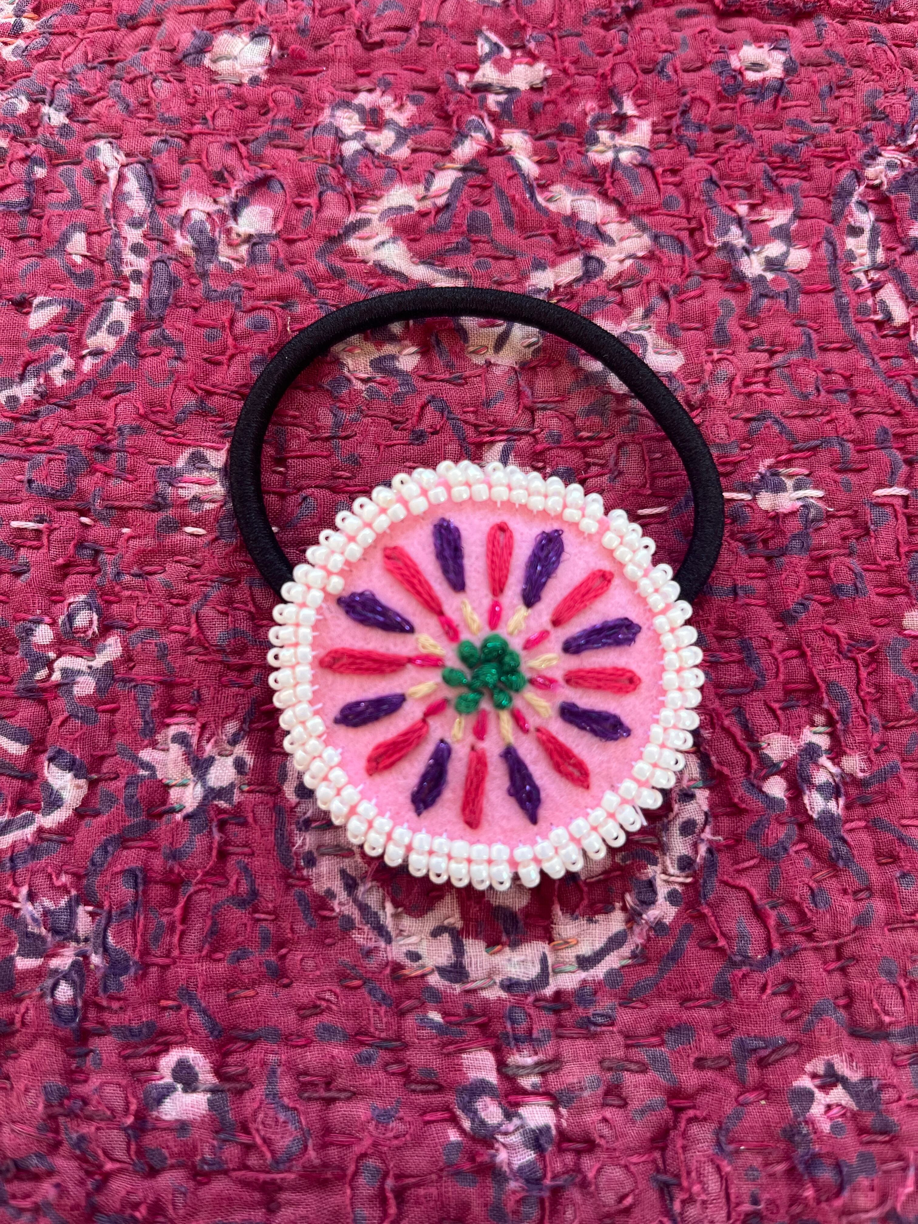 刺繍とビーズのヘアゴムになります。